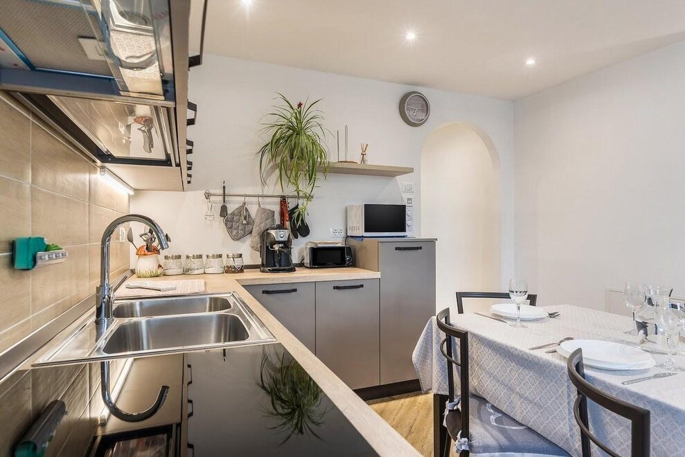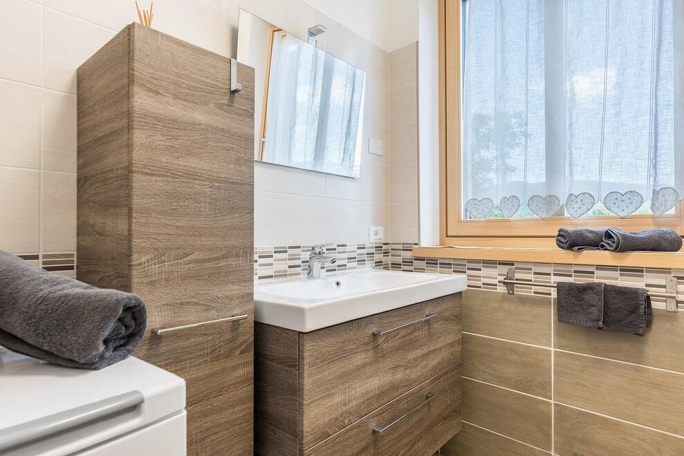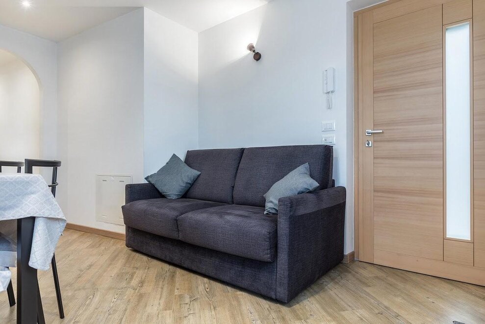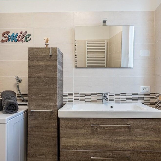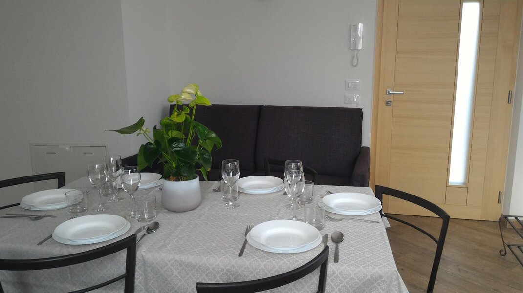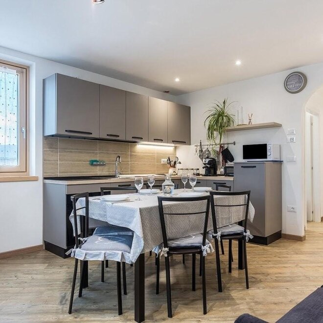 Úplně zrekonstruovaný byt o rozloze 44 m². Bydlení zahrnuje ložnici s manželskou postelí a patrovou postelí, koupelnu s vanou, umyvadlem, bidetem a WC, obývací pokoj s plně vybavenou kuchyní a rozkládací pohovkou. Televizor, pračka, žehlička, trouba, mikrovlnná trouba, lednice, mrazák, indukční varná deska, talíře a nádobí, ložní prádlo, koupelnový a kuchyňský textil.