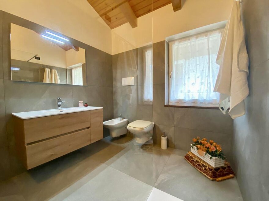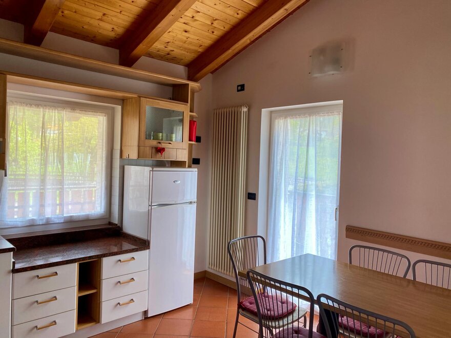 Byt se nachází v slunné oblasti, obklopený zelení luk s výborným výhledem na Brentu, za domem. Nachází se v prvním patře, má prostornou zahradu a parkovací místo. Nový s kuchyní a mikrovlnnou troubou, obývacím pokojem, dvěma pokoji (6 lůžek), prádelnou, televizí, koupelnou se sprchou a vanou a dvěma prostornými balkony.