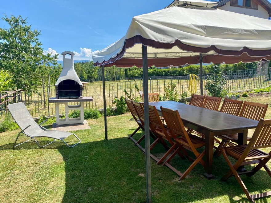 V domě je zahrada vybavená grilem, jídelním stolem, odpočinkovým koutem a houpačkou. Také nabízíme dvě venkovní parkovací místa a úložiště na lyže / kola v garáži.