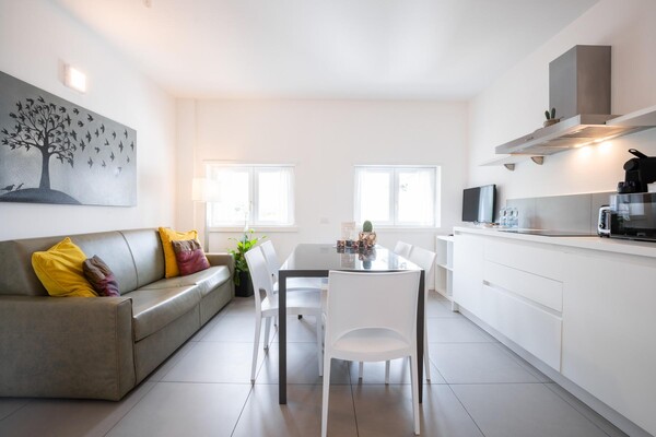 Tento exkluzivní apartmán s prostorným balkonem je ideální pro ty, kteří se chtějí ponořit do krásy okolní krajiny a vychutnat si výhled na olivový háj a zahradu. Plně vybavená a velmi prostorná kuchyň nabízí možnost připravovat lahodná jídla. Terasa je k dispozici pro chvíle odpočinku nebo pro vychutnání aperitivů s přáteli.