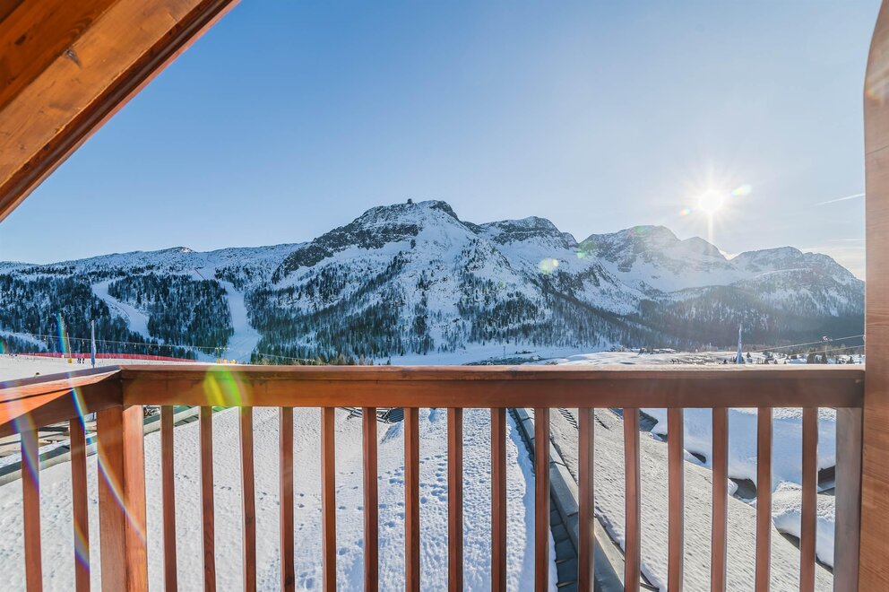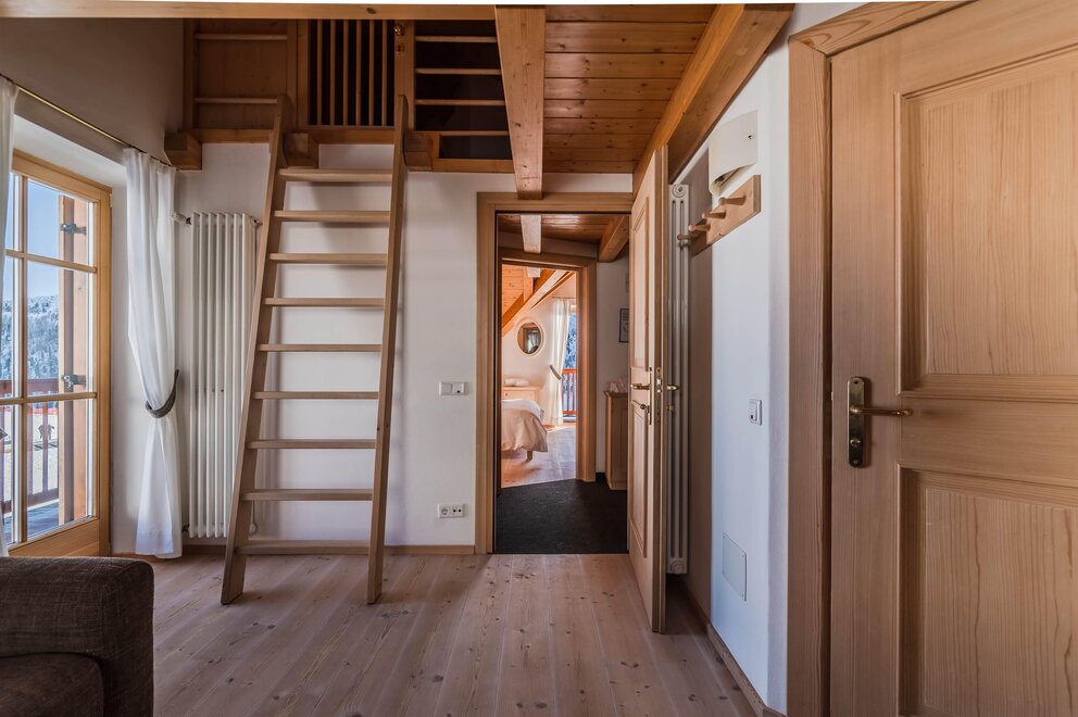 Vybavený 2 koupelnami s sprchovým boxem, balkonem s nádherným výhledem přímo na lyžařské sjezdovky, na Pale di San Martino a okolní DolomityVybavení pokojů