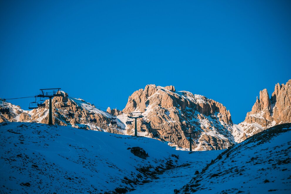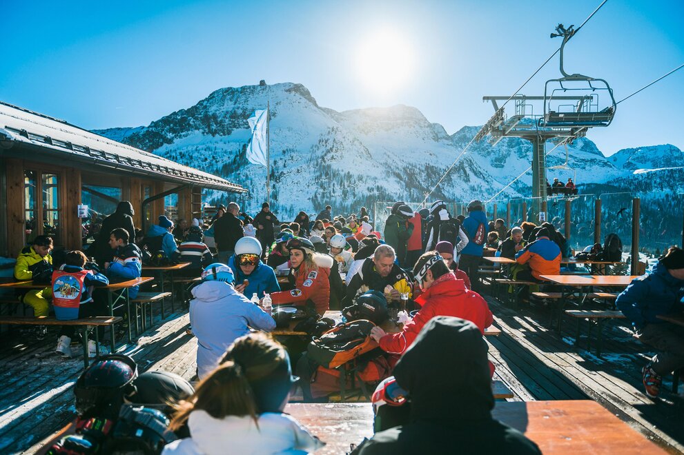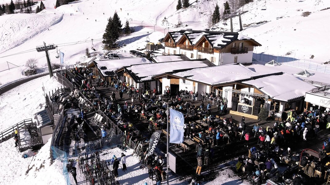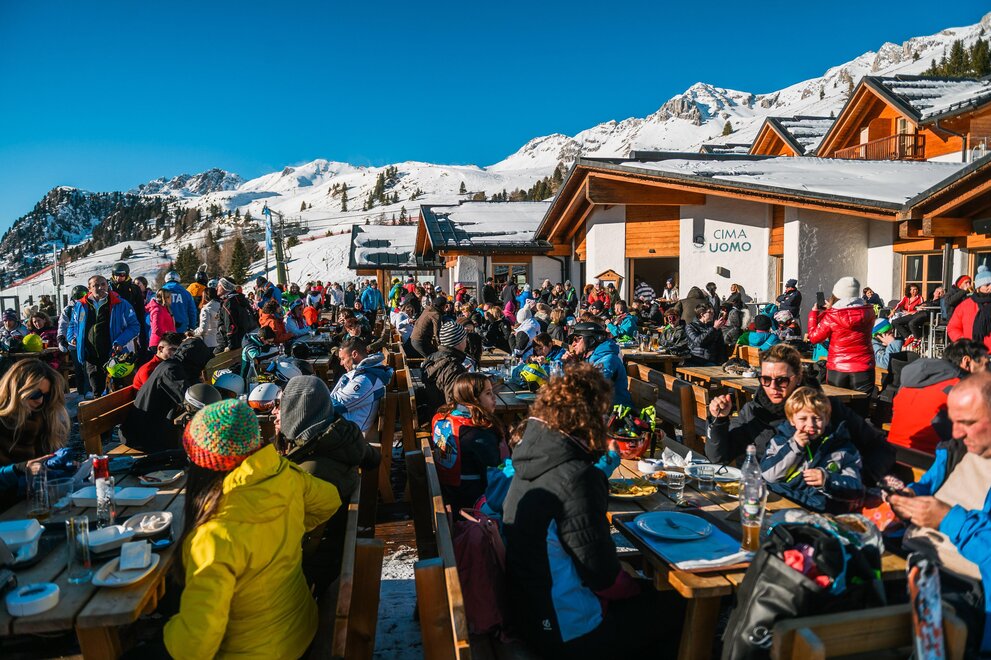 Passo San Pellegrino, 1918 metrů. Více než 60 kilometrů sjezdovek a krajina, která berie dech. Uprostřed se tyčí Cima Uomo, už padesát let horská chalupa a místo setkání pro lyžaře, turisty, milovníky sněhu a vysokohorských výletů. Dostupné na lyžích, pěšky a autem.