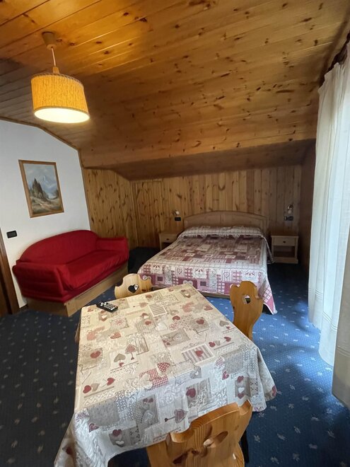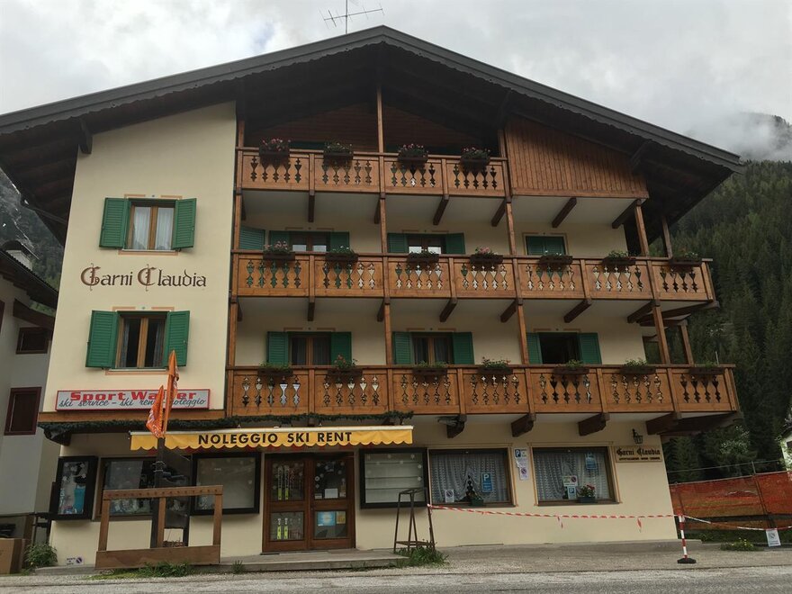 The Garni Claudia, consisting of 9 rooms (8 doubles and one single), was established in the 1980s out of love by the Seppi family. The new management, starting from May 2024, has been entrusted to Mr. Minischetti Giangrazio. The Garni is located in Alba di Canazei, a fraction of the municipality of Canazei, in the heart of the Val di Fassa, at an altitude of 1,517 m above sea level. The small village is situated along the banks of the Avisio stream, along the state road 641 leading to the Fedaia Pass. Alba is renowned primarily as a summer and winter tourist destination, connected to the ski area of the valley by the Ciampac cable car. From the village, it is possible to embark on excursions to the mountain groups of Sella, Costabella, Monzoni, and Marmolada. During the winter season 2015-2016, the new cable car connecting Alba to Col Derossi/Belvedere was inaugurated.