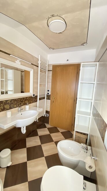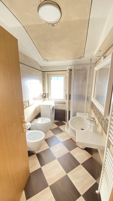 Vstup do bytu je přes soukromé schodiště a skládá se z malé chodby v přízemí, po vystoupení nahoru najdeme obývací pokoj/salon a kuchyň, ložnici s manželskou postelí a pokoj s palandou a třetím rozkládacím lůžkem, které se stává manželskou postelí s dolním lůžkem, koupelnu a prostorný balkon. Možnost bezplatného parkování před domem.Apartmán je vybaven všemi pohodlím: myčka nádobí, trouba, mikrovlnná trouba, lednice a mrazák, chytrá TV, Wi-Fi, rychlovarná konvice, dětská postýlka* a vysoká židle* (na vyžádání)
