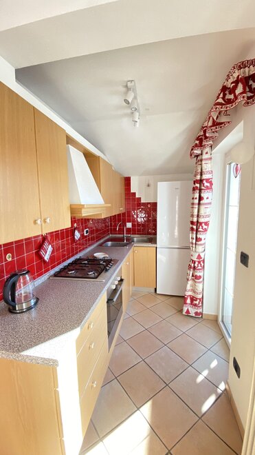 Apartmán je vybaven všemi pohodlími: myčka na nádobí, trouba, mikrovlnka, lednice a mrazák, smart TV, Wi-Fi, rychlovarná konvice, dětská postýlka* a vysoká židle* (na vyžádání)