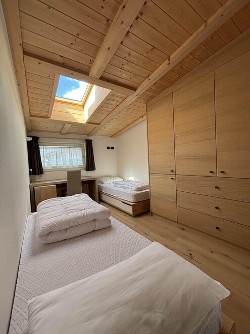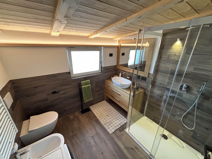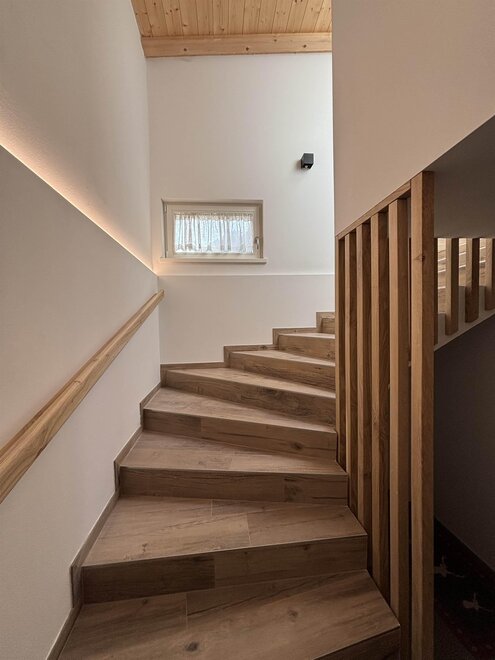 Apartmá se nachází v podkroví, je nově postavené a vkusně zařízené dřevem v dolomitském stylu. Velmi tiché a světlé, s intimní a teplou atmosférou je ideální volbou pro přátele nebo rodiny, které chtějí mít k dispozici veškerý možný komfort.