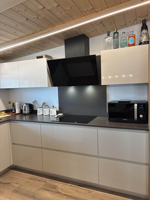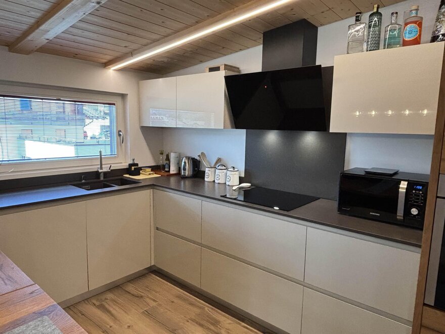 - Plně vybavenou otevřenou kuchyni s myčkou nádobí, troubou, mikrovlnnou troubou, indukční varnou deskou se 4 varnými zónami, americkou lednicí se 2 dveřmi a dávkovačem čerstvé vody a výrobníkem ledu