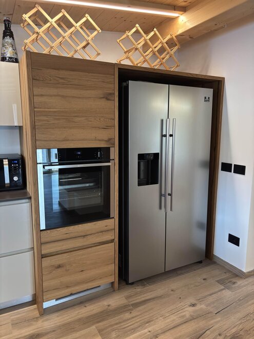 - Open space kuchyní s troubou, mikrovlnnou troubou, myčkou nádobí, indukční varnou deskou, americkou lednicí s vodou a ledem,