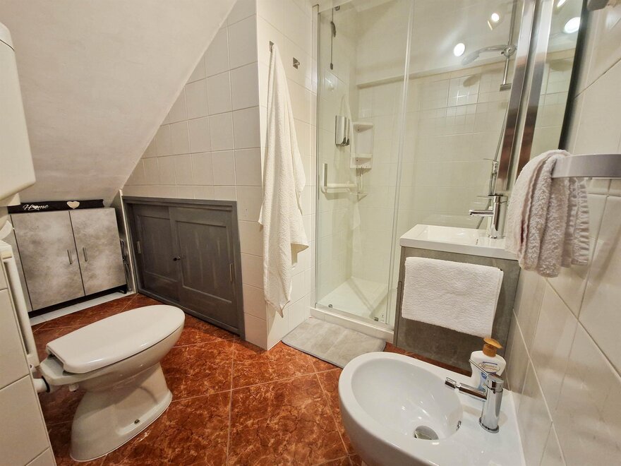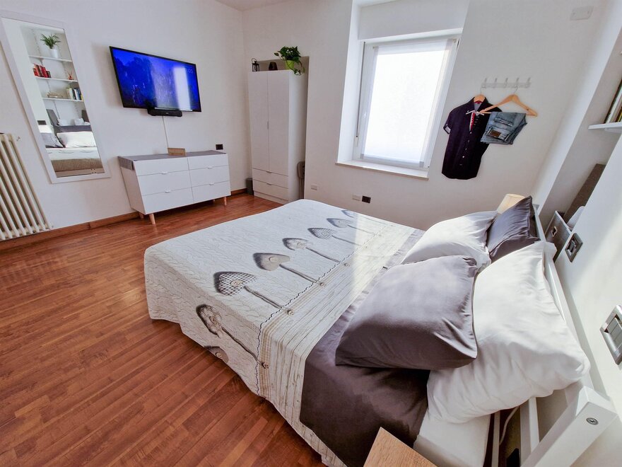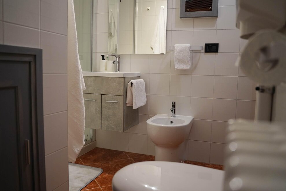 "Da Michele" v Levico Terme se pronajímá pokoj pro dvě osoby s vlastní koupelnou uvnitř útulného bytu s společnými prostory. Pokoj má manželskou postel (možno rozdělit na dvě jednolůžkové postele na požádání) a TV. Vlastní koupelna je vybavena sprchou (s držadlem pro handicapované), bidetem a fénem.