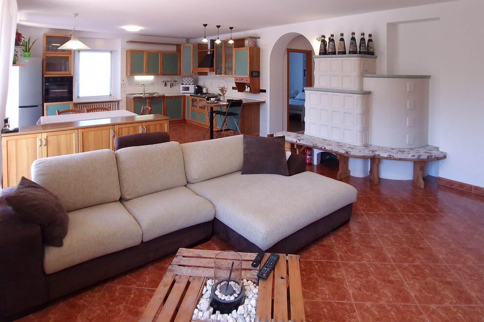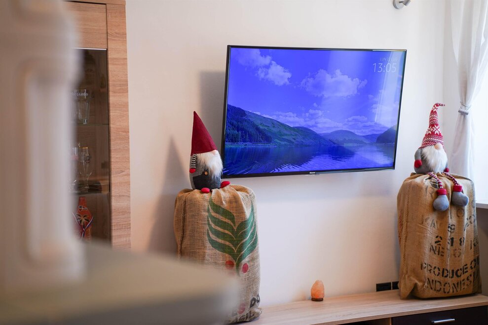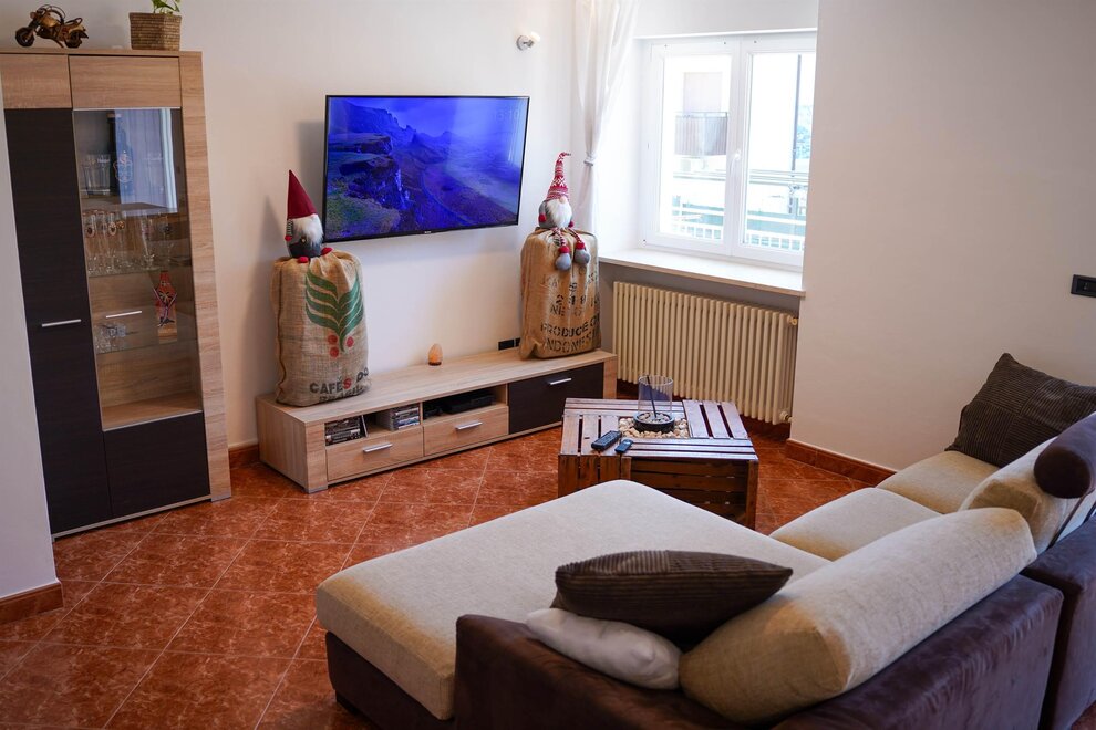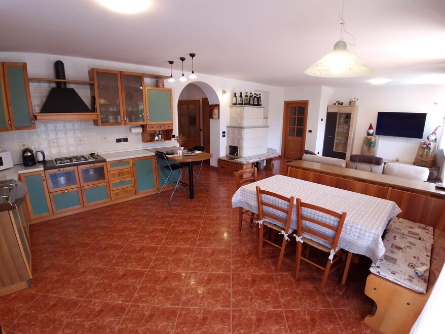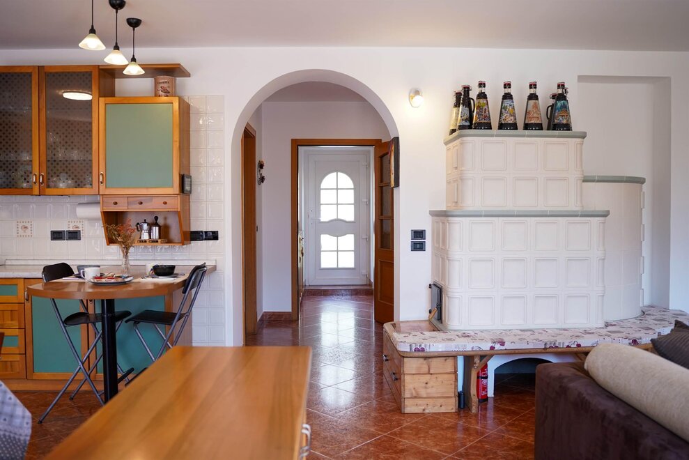 Hosté mají přístup k prostorné obytné oblasti o rozloze 55 m² s plně vybavenou kuchyní, pohodlným obývacím pokojem s pohovkou, TV 55" s předplatným Prime a, v zimním období, typickým trentino kachlovým sporákem, který vytváří teplou a útulnou atmosféru. K dispozici je bezplatné Wi-Fi po celé domě.