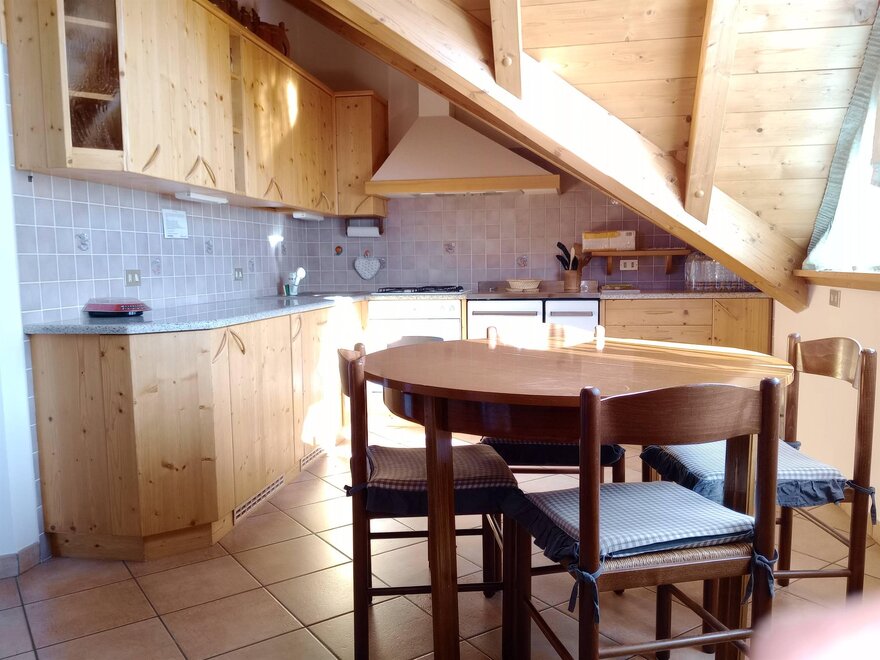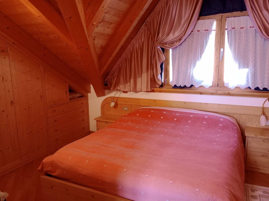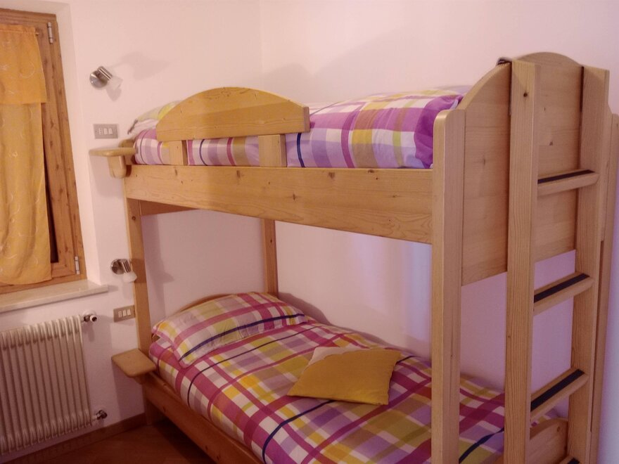 Další apartmán se nachází v 1. patře a má 1 ložnici s manželskou postelí a 1 s patrovou postelí, obývací pokoj, malou kuchyni.