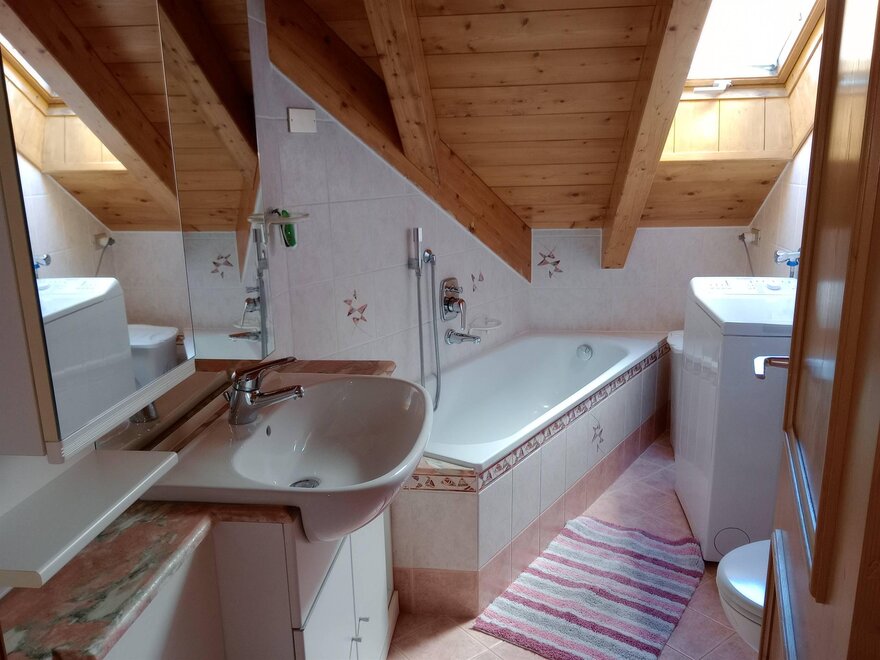 Byt v prvním patře má manželskou ložnici, pokoj se palandou, koupelnu se sprchou, prostorný balkon. Vybaven Wi-Fi. Malá zvířata povolena.