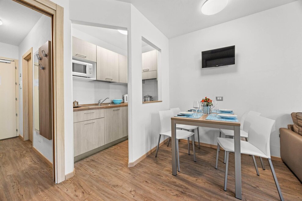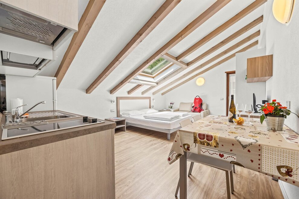 Tento typ bytu byl kompletně zrenovován a skládá se z vchodu s palandou odděleného od obývacího prostoru posuvnými dveřmi, v obývacím pokoji je jídelní část a zatahovací manželská postel, oddělený kuchyňský kout, koupelna se sprchou, balkon se stolem a židlemi nebo oplocená zahrádka. Všechny apartmány jsou obsluhovány výtahem a jsou vybaveny LCD televizí, telefonem, trezorem, kuchyní s lednicí, nádobím, talíři a sklenicemi, mikrovlnnou troubou, kávovarem, sadou na úklid kuchyně (čisticí prostředek, houbu a utěrku), koupelnou se sprchou, bidetem, WC a fénem. Dále jsou poskytovány deky, polštáře a ložní a koupelnová prádla s týdenní výměnou.