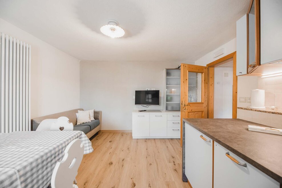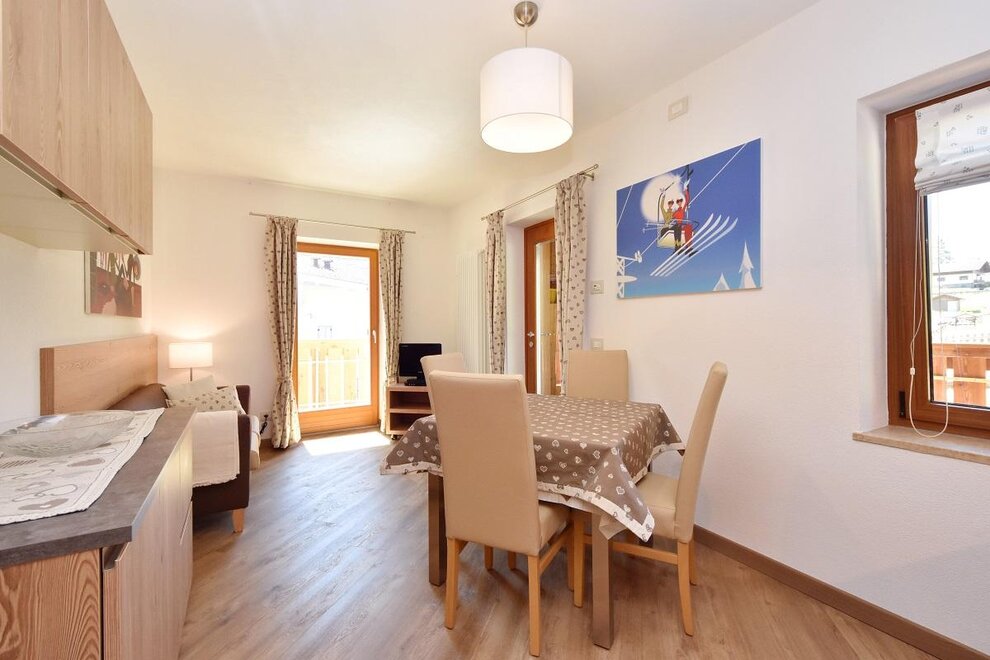 Dvoupokojový byt, který má samostatný vchod, má balkon směrem na jihovýchod a terasu na jihozápadní straně, kde si můžete v pohodě a klidu užívat sladké chvíle relaxace během vaší horské dovolené. Jeho privilegovaná poloha nabízí široký panoramatický výhled na město Pozza di Fassa a skvělé sluneční osvětlení v každou denní dobu.