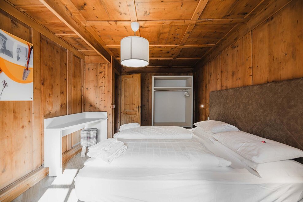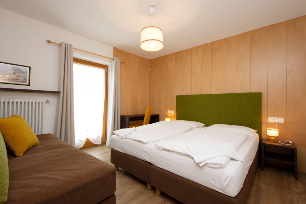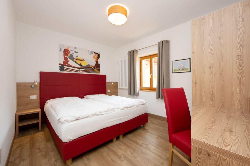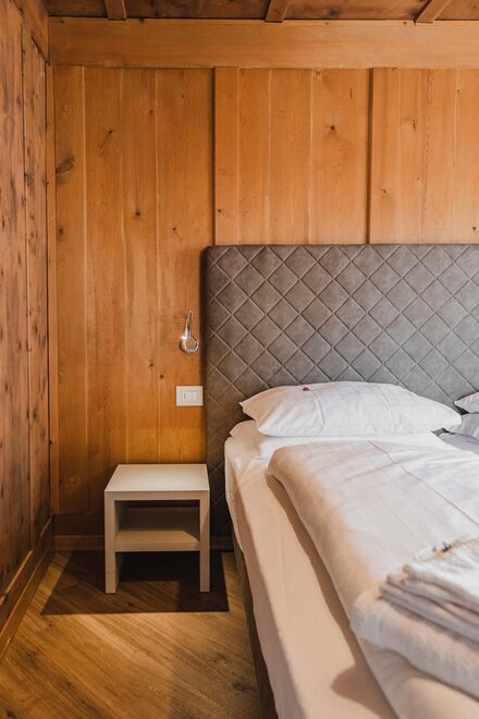 Balkon nabízí velkolepý výhled na město Pozza di Fassa a Cima Dodici v dolomitské skupině Monzoni. Interiéry jsou pokryty dřevem a pokoje mohou ubytovat až 4 osoby, s možností uspořádat postele buď jako manželské, nebo jako jednolůžkové.