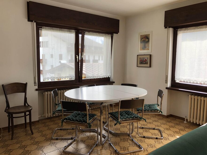 “Casa Faoro” is a villa with a total of three flats. The one here proposed has three bedrooms, two double rooms and one twin room. Bathroom with washing machine, a spacious and sunny living room with TV and kitchen with dishwasher. It has a terrace where you can enjoy the view of the Pale di San Martino and a balcony. The house has a private street where you can park your cars (one car for each apartment) and a gorgeous garden when there is relaxing seats for each apartments where you can enjoy the Pale Di San Martino. The house is located less than 10 minutes on foot far from Fiera di Primiero center, thanks to a beautiful walk. In front of the house (200 meters) there is the bus stop to go to the mountains.