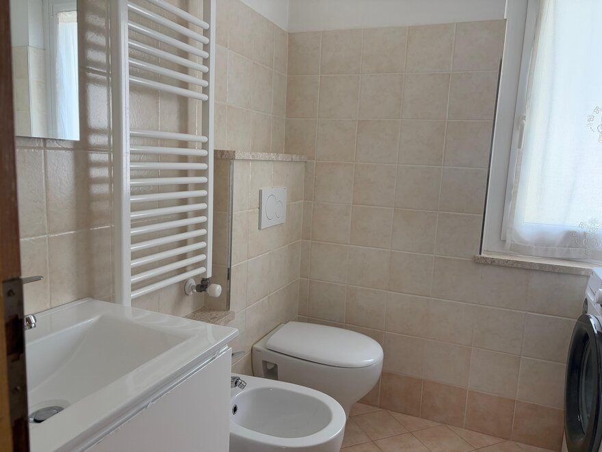 Byt v prvním patře, dobře vybavený, pečlivě upravený a útulný, skládající se z obytné kuchyně, obývacího pokoje, prostorného balkonu a 2 ložnic (jedna manželská a jedna dvojlůžková). Disponuje pračkou, žehličkou, mikrovlnnou troubou, koupelnou se sprchou; zahrada společná s hřištěm pro děti k dispozici.