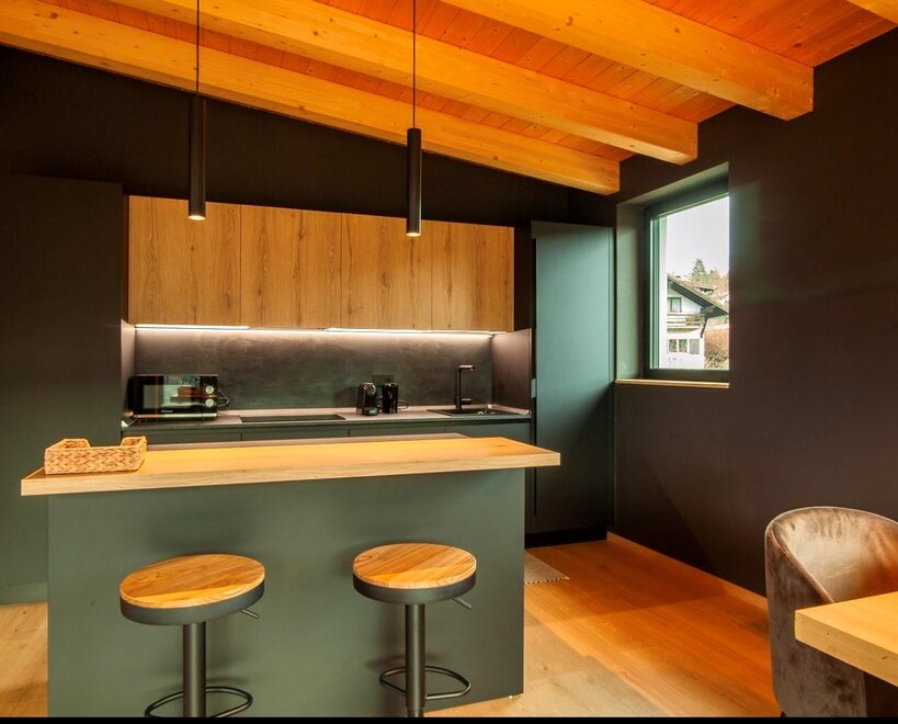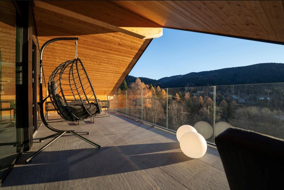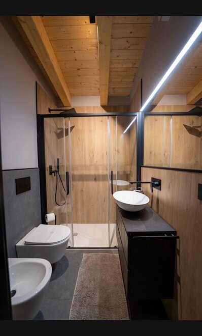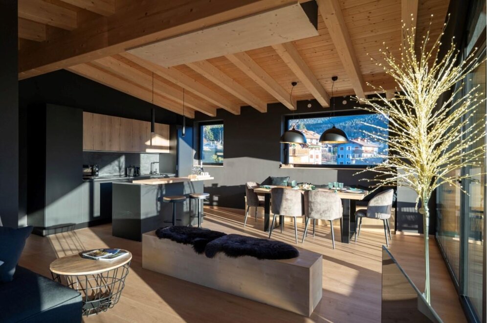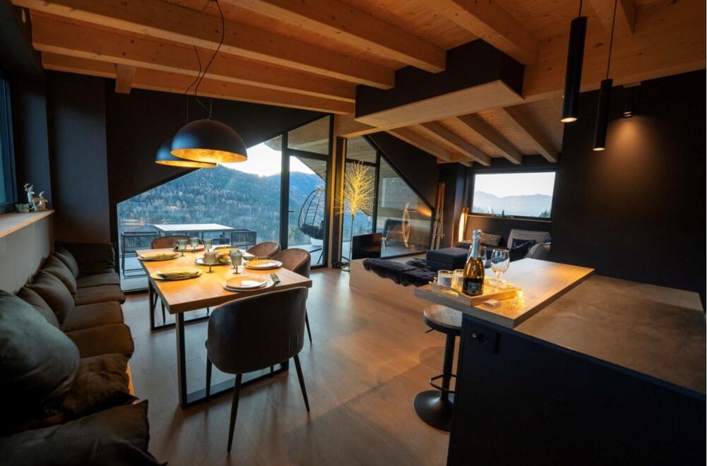 Byt Glam  Haus v srdci Folgaria. Nový a pečlivě zařízený byt, s designovým nábytkem. 3 ložnice (jedna manželská s koupelnou a dvě dvojlůžkové), dvě koupelny, prostorný a světlý obývací pokoj obklopený velkými okny, skládající se z obývacího pokoje s TV, jídelny a kuchyně. Terasa s panoramatickým výhledem na hory s jídelním stolem a relaxačními křesly.