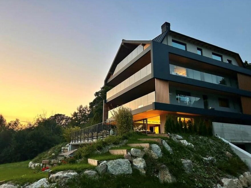 Soukromá úschovna pro kola a lyže, podzemní garáž s vyhřívaným vjezdem je vybavena nabíjecími stanicemi.
