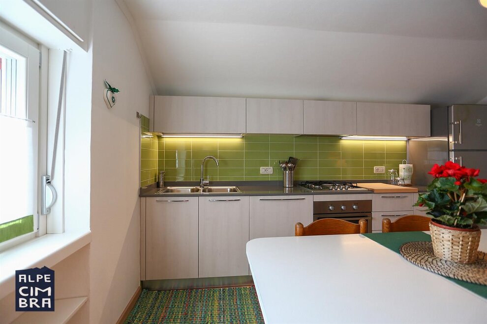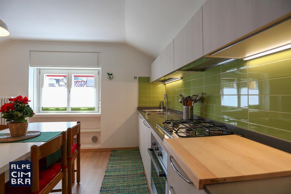 Byt ve Folgarii o přibližně 45 m² v podkroví zcela zrekonstruovaný a zařízený. Nachází se v slunečné a klidné oblasti jen kousek od centra. Kuchyň vybavená myčkou, lednicí a troubou, jedna ložnice s manželskou postelí a jedna dvojlůžková. Koupelna s přirozeným světlem z veluxu, sprchou a pračkou. Parkovací místo a úložna lyží/biků.