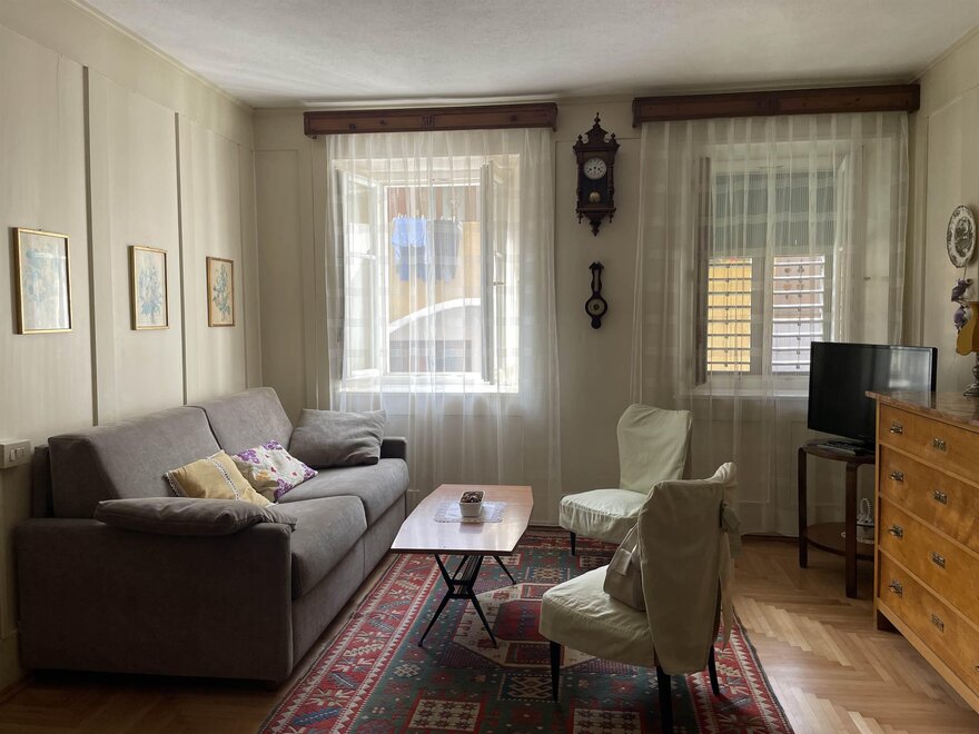 Byt o rozloze 70 m², v historickém centru, se 2 dvojitými ložnicemi, a případnou rozkládací pohovkou pro jednu a půl postele, terasou, vlastním vytápěním, blízko obchodů, v klidné oblasti, 2 vchody, z nichž jeden je samostatný a umožňuje přímý přístup na dvůr, kde je parkovací místo. Soukromá garáž.