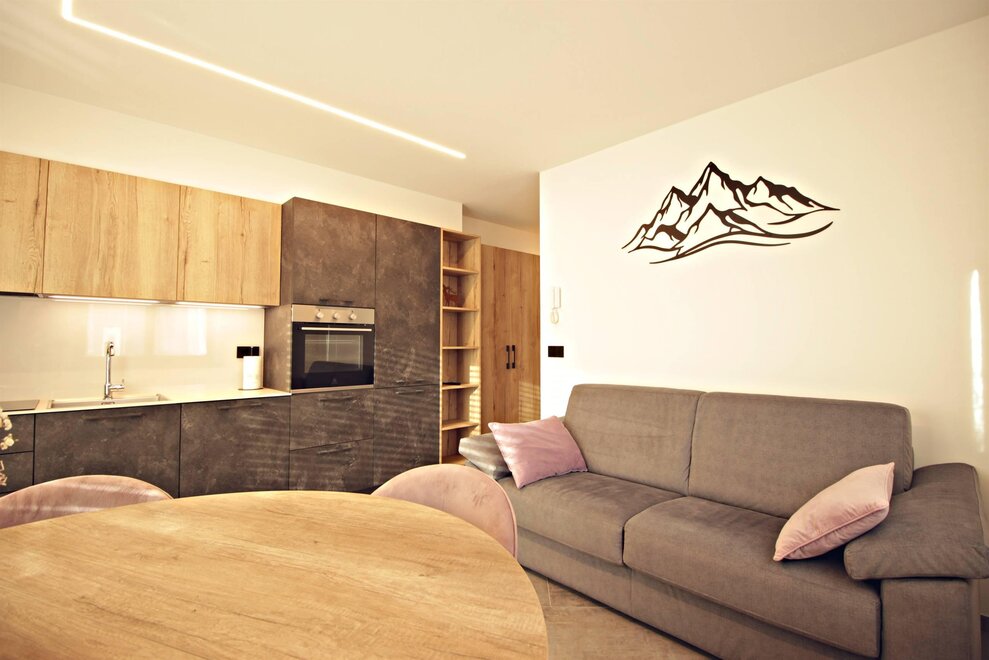 Slunečný apartmán se nachází v klidné oblasti, v novostavbě a je umístěn v prvním patře. Bytová jednotka se skládá z manželské ložnice, koupelny a prostorného otevřeného prostoru, který integruje kuchyň a obývací pokoj s rozkládací pohovkou. K nemovitosti patří zařízený balkon, z něhož je krásný výhled na pohoří Lagorai.