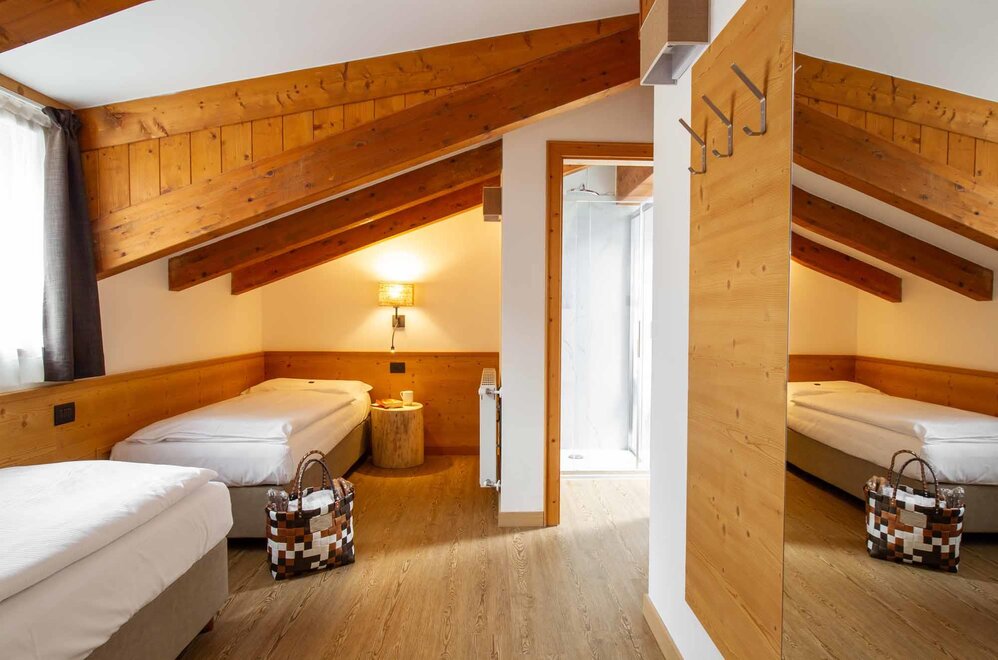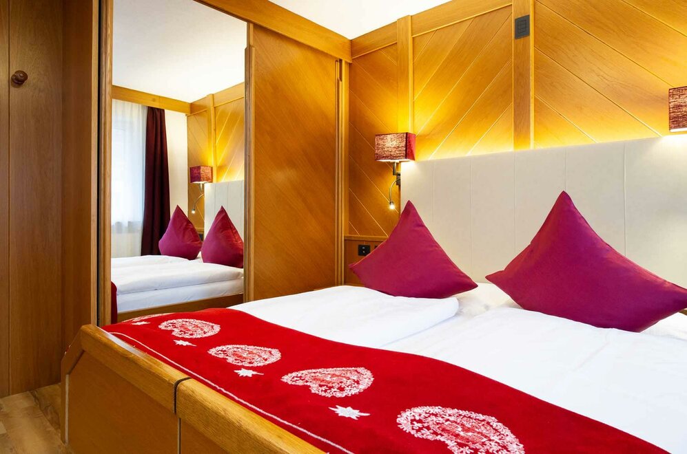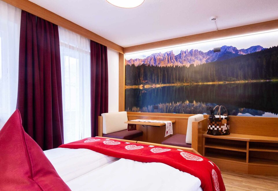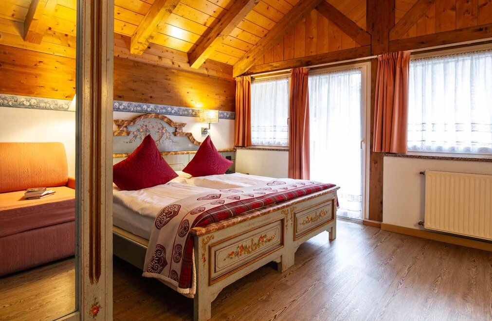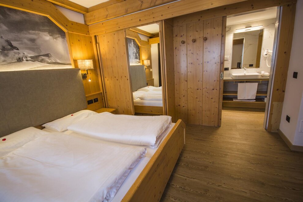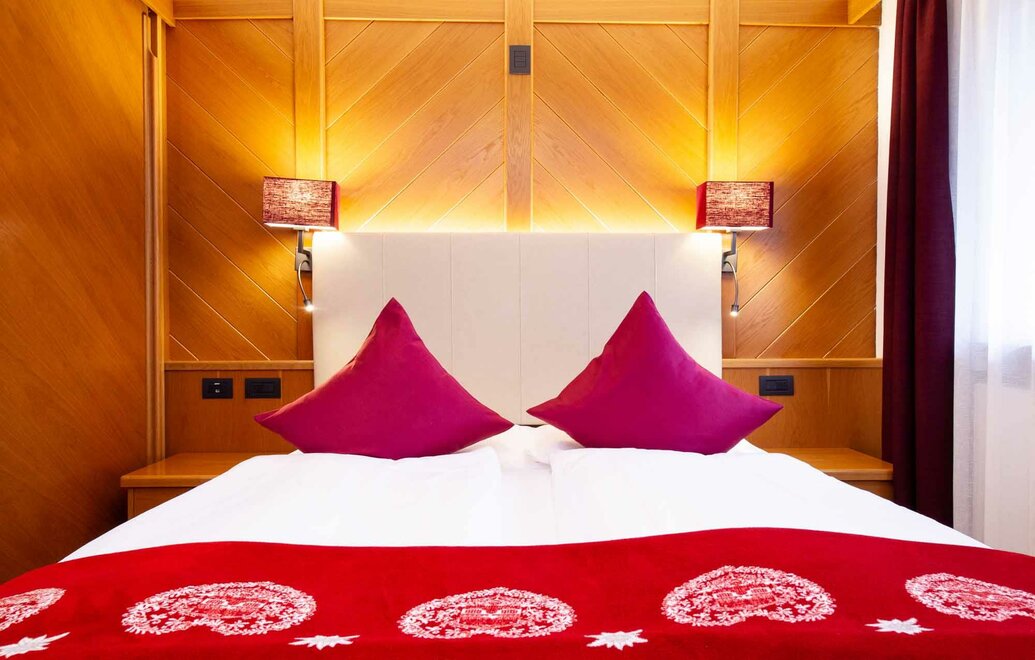 Komfortní pokoje Prostorné a pečlivě zařízené manželské pokoje. Dekorovány v alpském stylu a pečlivě vyrobeny z vysoce kvalitních materiálů. Některé s vlastním balkonem a jiné na půdě, vybavené službami, telefonem, satelitní televizí, trezorem, fénem. Pro dovolenou zaměřenou na odpočinek a relaxaci. NAŠE SLUŽBY Recepce otevřena od 08:00 do 23:00 Bar otevřen od 08:00 do 23:00 Čítárna s koženými pohovkami a velkou televizí Spa Ega Pura a nový panoramatický bazén Spa kit s ručníkem na saunu, županem a pantoflemi Bezplatné Wi-Fi připojení na internet Velké bezplatné soukromé parkoviště s několika krytými místy V ZIMĚ Lyžárna s kamerovým dohled a vyhříváním/usušováním lyžařských bot Sleva 50% na jízdenku na skibus Sleva 10% na půjčení lyží a zimního vybavení V LÉTĚ Rozlehlá zahrada s dětskými hrami, altánem a grilem Sledovaná úschovna kol a bezplatné půjčování kol