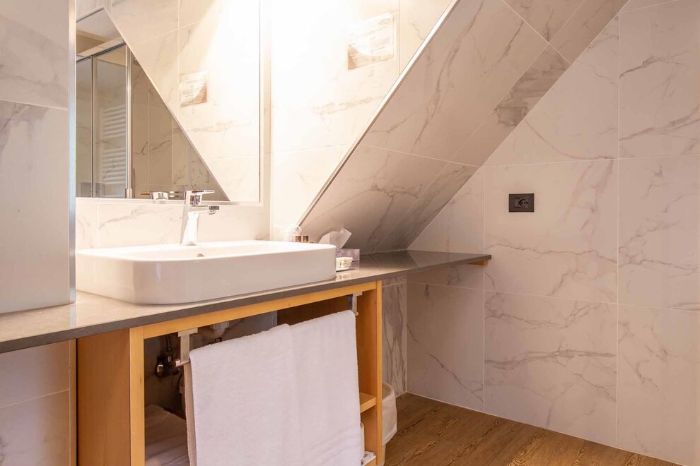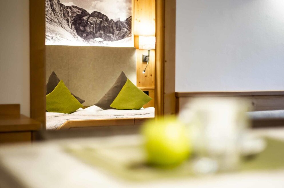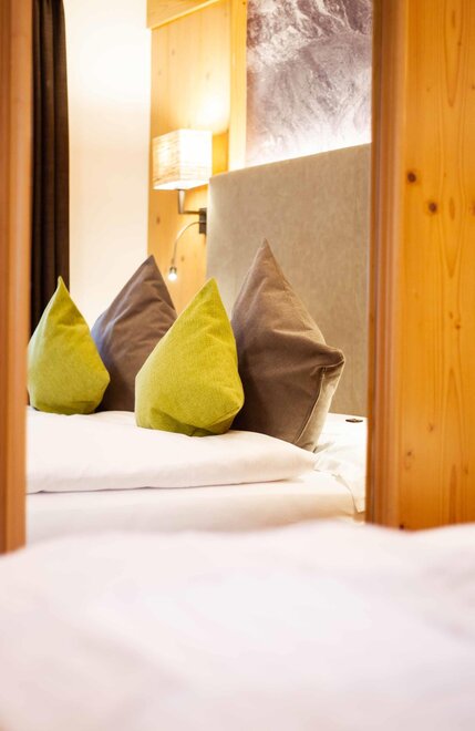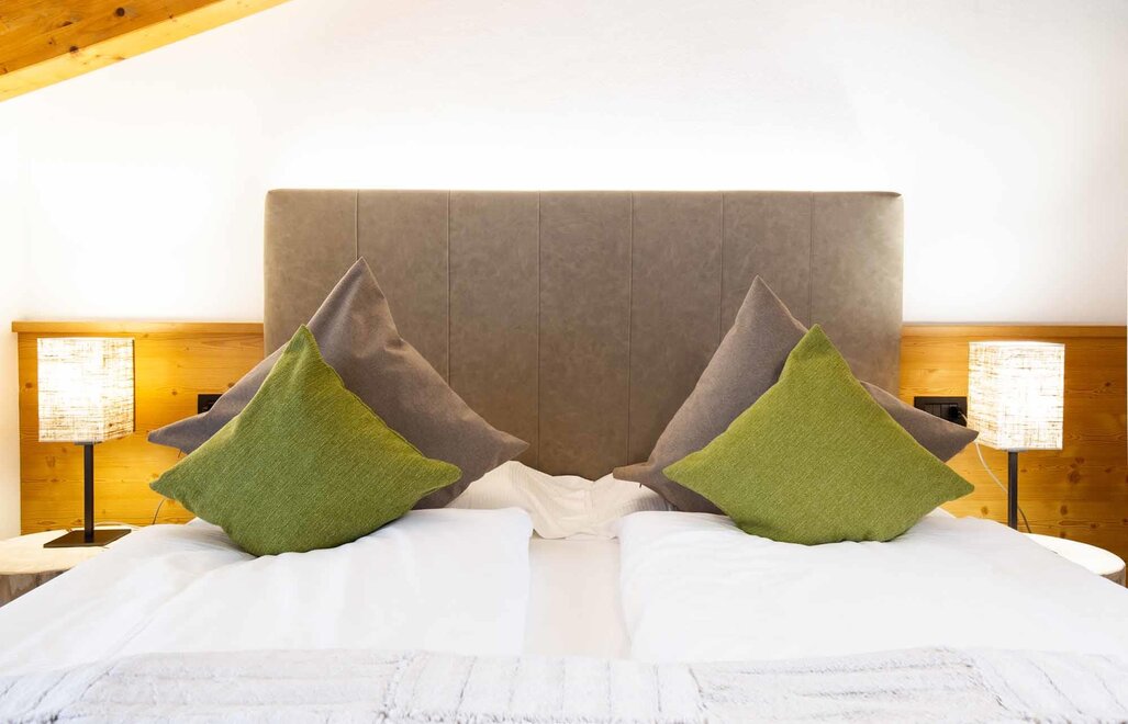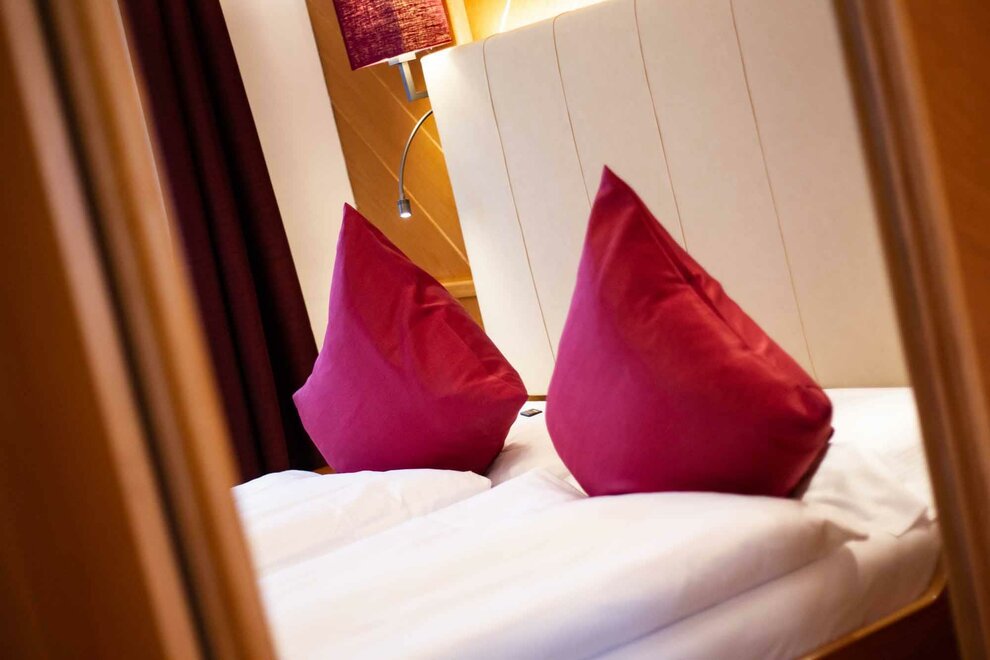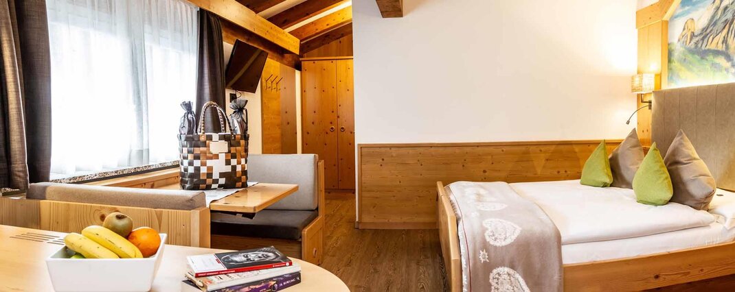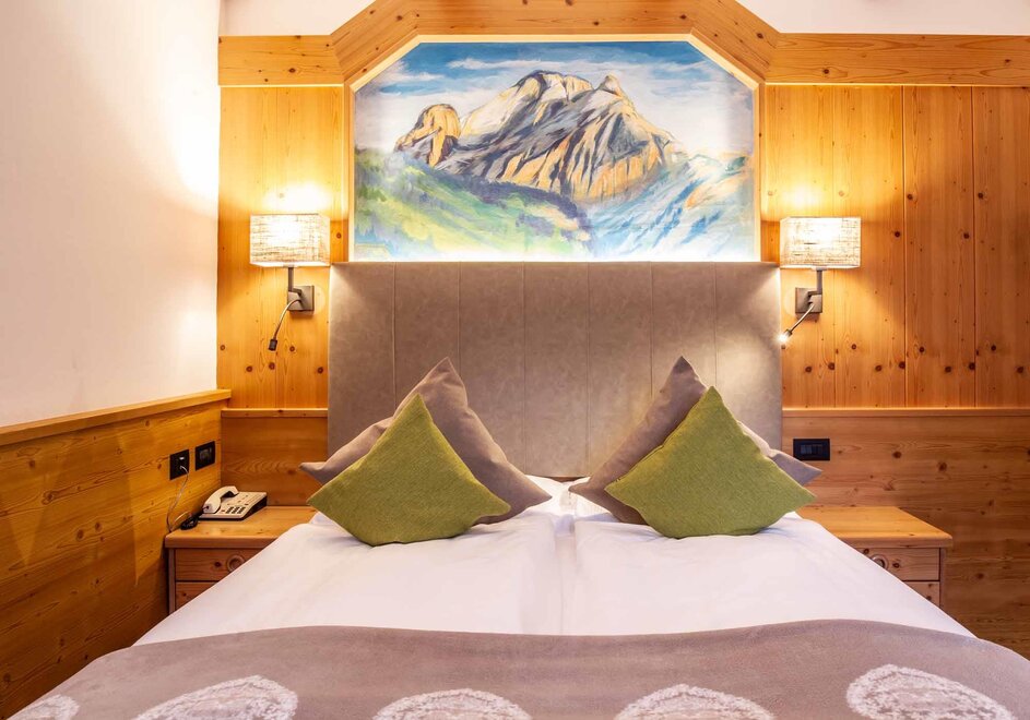 Komfortní pokoje Prostorné a pečlivě zařízené manželské pokoje. Dekorovány v alpském stylu a pečlivě vyrobeny z vysoce kvalitních materiálů. Některé s vlastním balkonem a jiné na půdě, vybavené službami, telefonem, satelitní televizí, trezorem, fénem. Pro dovolenou zaměřenou na odpočinek a relaxaci. NAŠE SLUŽBY Recepce otevřena od 08:00 do 23:00 Bar otevřen od 08:00 do 23:00 Čítárna s koženými pohovkami a velkou televizí Spa Ega Pura a nový panoramatický bazén Spa kit s ručníkem na saunu, županem a pantoflemi Bezplatné Wi-Fi připojení na internet Velké bezplatné soukromé parkoviště s několika krytými místy V ZIMĚ Lyžárna s kamerovým dohled a vyhříváním/usušováním lyžařských bot Sleva 50% na jízdenku na skibus Sleva 10% na půjčení lyží a zimního vybavení V LÉTĚ Rozlehlá zahrada s dětskými hrami, altánem a grilem Sledovaná úschovna kol a bezplatné půjčování kol