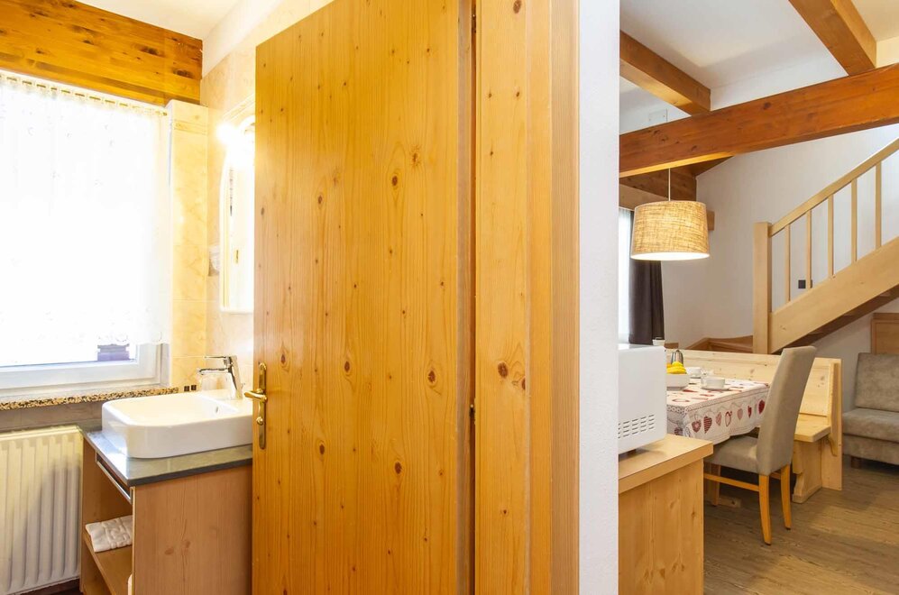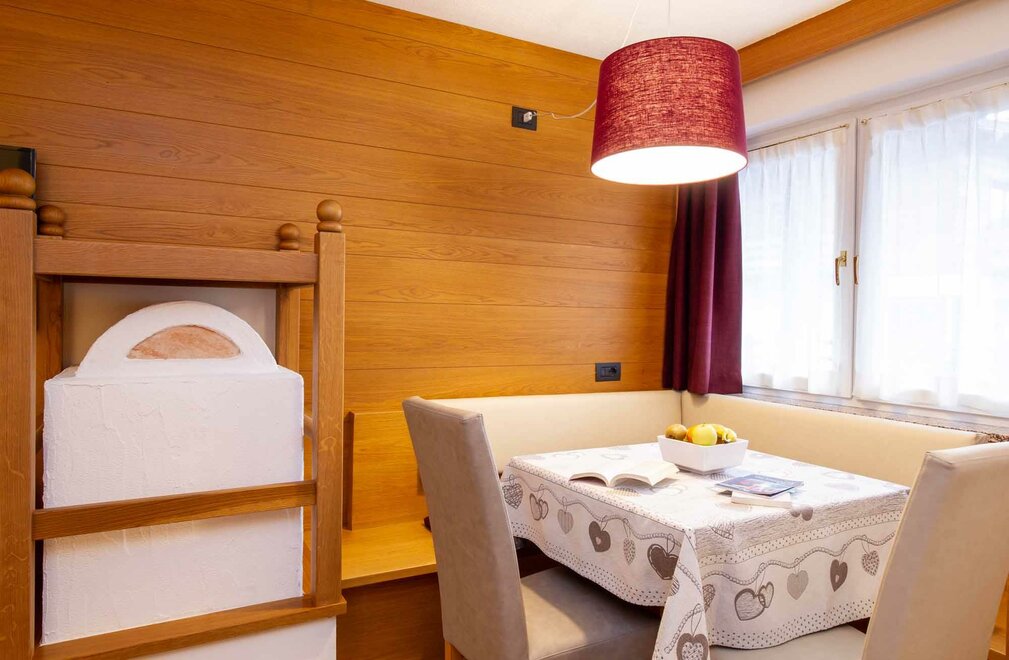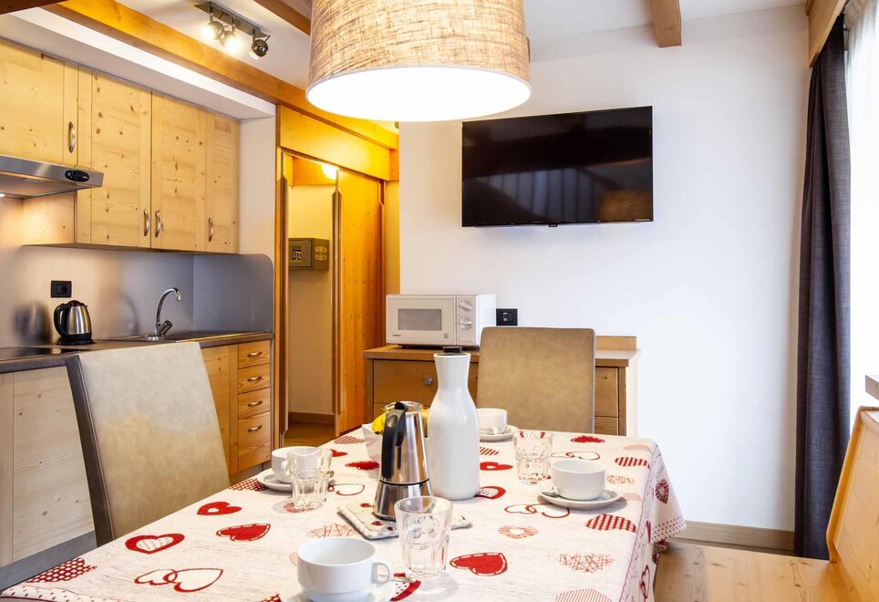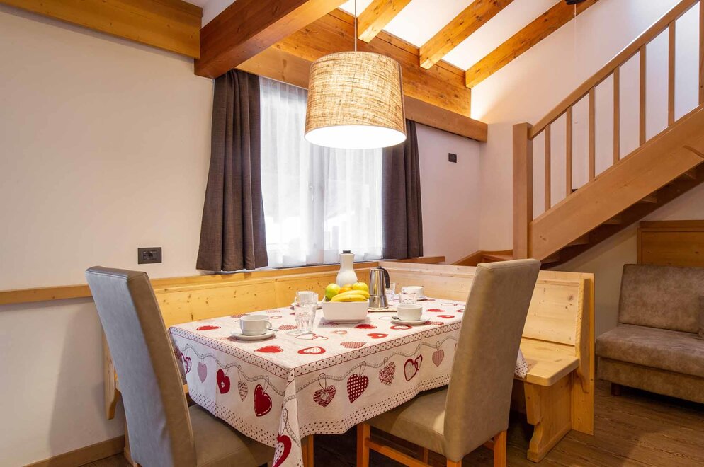 Tři slova stačí k jejímu popisu: prostor, luxus, komfort! Má dvě patra, se dvěma manželskými pokoji, dvěma koupelnami (sprcha a vana), třemi LCD televizory, prostorným obývacím pokojem a kuchyní vybavenou všemi pohodlími (myčka, mikrovlnka, sklo-keramická varná deska), balkonem a soukromou panoramatickou terasou. NAŠE SLUŽBY Recepce otevřená od 8:00 do 23:00 Bar otevřený od 8:00 do 23:00 Čítárna s koženými pohovkami a velkoplošnou TV Spa Ega Pura a nový panoramatický bazén Bezplatné připojení k internetu Wi-Fi Prostorné bezplatné soukromé parkoviště s několika krytými místy V ZIMĚ Úschovna lyží s videokamerovým dohledem a vyhřívanými/sušícími botami Sleva 50 % na jízdenku na Skibus Sleva 10 % na pronájem lyží a vybavení V LÉTĚ Prostorná zahrada s hračkami Úschovna kol s videokamerovým dohledem a bezplatný pronájem kol