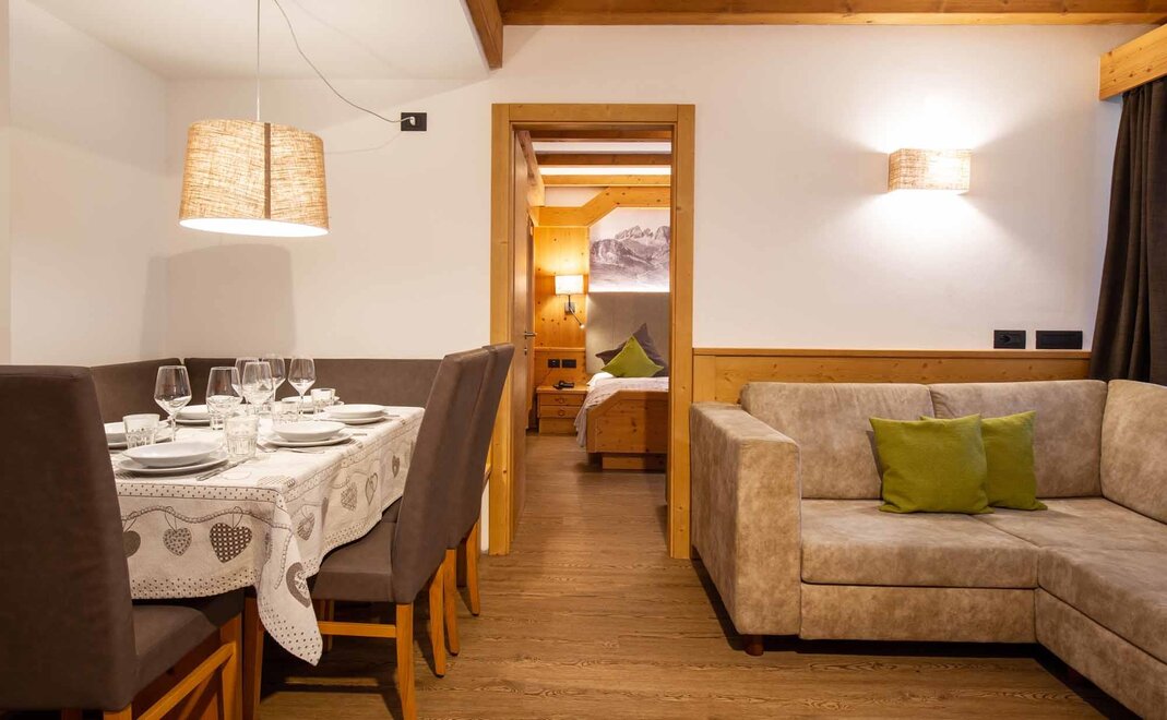 Suite Dolomiti Manželské pokoje s LCD TV a panoramatickým výhledem na Sassolungo Obývací pokoj s LCD televizí s maxi obrazovkou (možnost ubytování dalších dvou osob) Kuchyň vybavená všemi pohodlím (myčka, mikrovlnná trouba, sklo-keramická varná deska) Koupelna se sprchou Balkon s výhledem na Gran Vernel Spa set s saunovým ručníkem, županem a pantoflemi Telefon, trezor, fén Skutečný klenot, kde se cítíte důležití! NAŠE SLUŽBY Recepce otevřena od 08.00 do 23.00 Bar otevřen od 08.00 do 23.00 Čítárna s koženými pohovkami a maxi televizí Spa Ega Pura a nový panoramatický bazén Bezplatné připojení k Wi-Fi Prostorné bezplatné soukromé parkoviště s několika krytými místy V ZIMĚ Skladiště lyží s videodohledem a ohřívačem/sušičkou bot Snížení o 50% na lístek na skibus Snížení o 10% na pronájem lyží a vybavení V LÉTĚ Prostorná zahrada s hračkami Skladiště kol s videodohledem a bezplatný pronájem kol