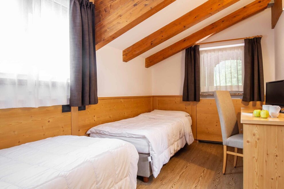 Jednolůžkové pokoje komfort Decorované v alpském stylu a pečlivě zařízené s použitím vysoce kvalitních materiálů. Všechny s vlastními balkony, vybavené službami, telefonem, satelitní televizí, trezorem, fénem. Pro dovolenou zaměřenou na odpočinek a relaxaci. NAŠE SLUŽBY Recepce otevřena od 08:00 do 23:00 Bar otevřen od 08:00 do 23:00 Čítárna s koženými pohovkami a maxi obrazovkou Wellness Ega Pura a nově panoramatický bazén Wellness sada s ručníkem do sauny, županem a pantoflemi Bezplatné Wi-Fi připojení k internetu Prostorné bezplatné soukromé parkoviště s několika krytými místy ZIMNÍ NABÍDKA Sklad lyží s videomonitoringem a vyhříváním/sušením bot Snížení o 50 % na lístek na skibus Snížení o 10 % na půjčovnu lyží a zimního vybavení LETNÍ NABÍDKA Prostorná zahrada se dětskými hrami, altánem a grilem Sklad na kola s videomonitoringem a bezplatná půjčovna kol