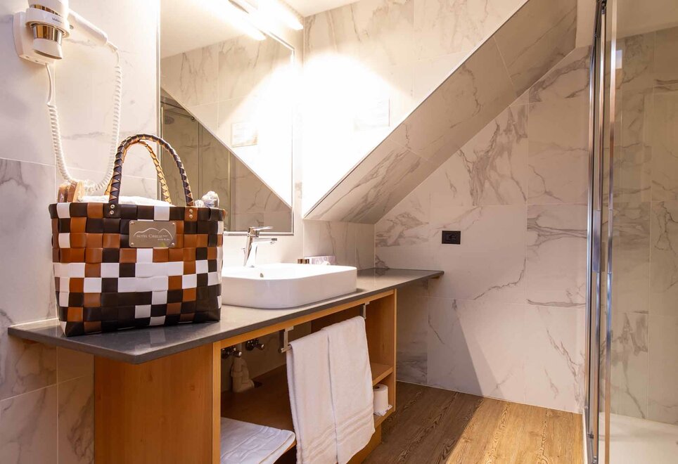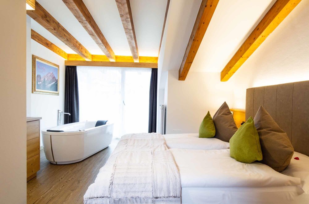Junior Suite Colac jsou ideálním hnízdem pro romantické páry! Manželská postel s velkou LCD TV Barový koutek Koupelna se sprchou Balkon s výhledem na Dolomity Spa kit s ručníkem do sauny, župany a pantoflemi Telefon, trezor, fén NAŠE SLUŽBY Recepce otevřená od 08:00 do 23:00 Bar otevřený od 08:00 do 23:00 Čítárna s koženými pohovkami a velkou TV Spa Ega Pura a nový panoramatický bazén Bezplatné Wi-Fi internetové připojení Prostorné bezplatné soukromé parkoviště s některými krytými místy V ZIMĚ Sklad na lyže s videodohledem a ohřívačem/sušením bot Snížení o 50 % na jízdenku na Skibus Snížení o 10 % na půjčovnu lyží a zimního vybavení V LÉTĚ Prostorná zahrada s dětskými hračkami, altánem a grilem Sklad na kola s videodohledem a bezplatná půjčovna kol