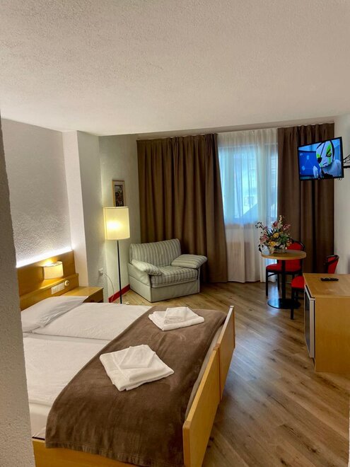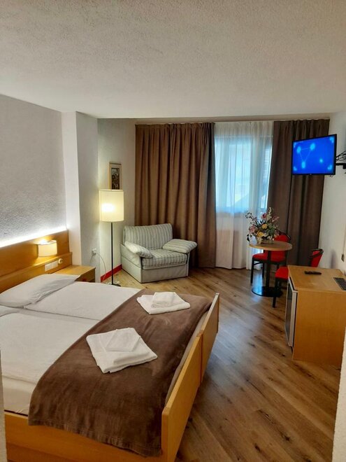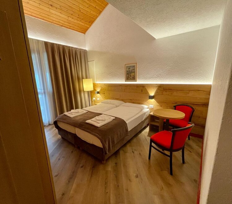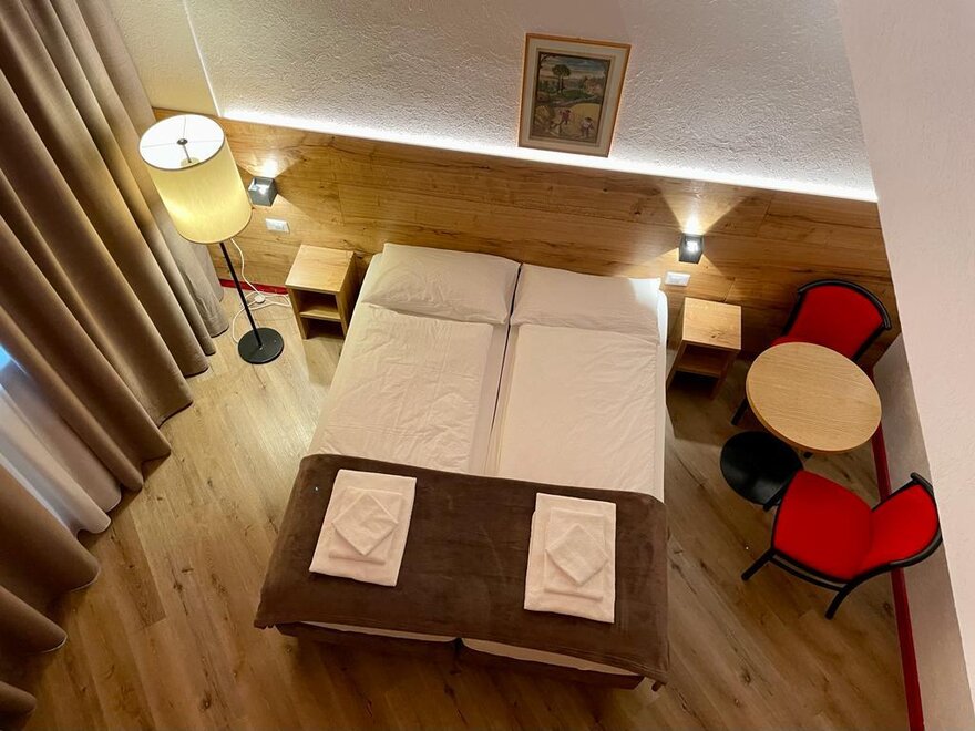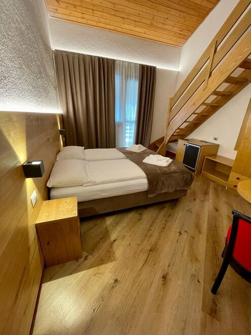 Komfortní dvoulůžkový pokoj, některé strukturované s mezaninem, TV, wi-fi, topení, koupelna se sprchou, WC, bidet, fén, toaletní sada do koupelny