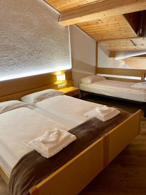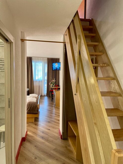 naše čtyřlůžkové pokoje jsou velké pohodlné pokoje a jsou vhodné zejména pro rodiny s malými dětmi i dospělé, některé jsou členěné s mezipatrem