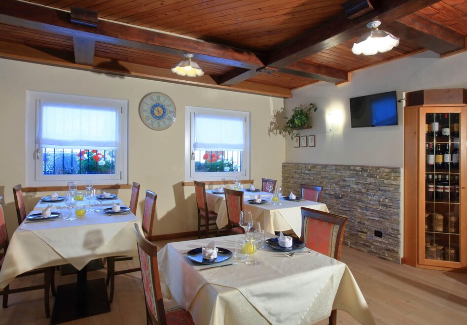 Restaurace, bar, televizní místnost, společenská místnost, diskotéka, 25 pokojů s příslušenstvím, parkoviště, zahrada, doprava výhradně pro naše hosty k lanovkám na Paganellu. To vše je vám k dispozici.