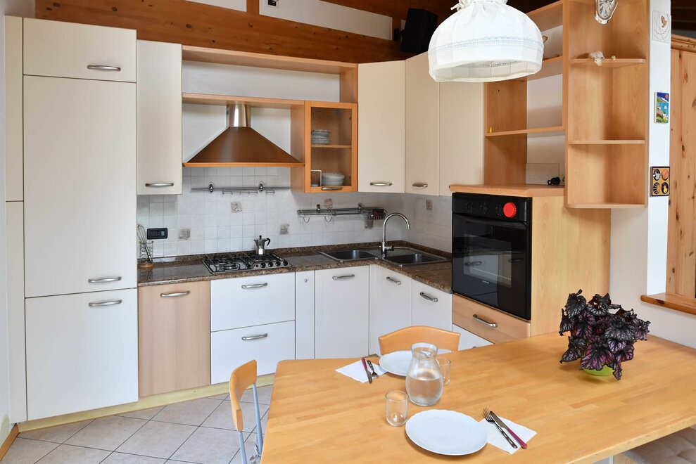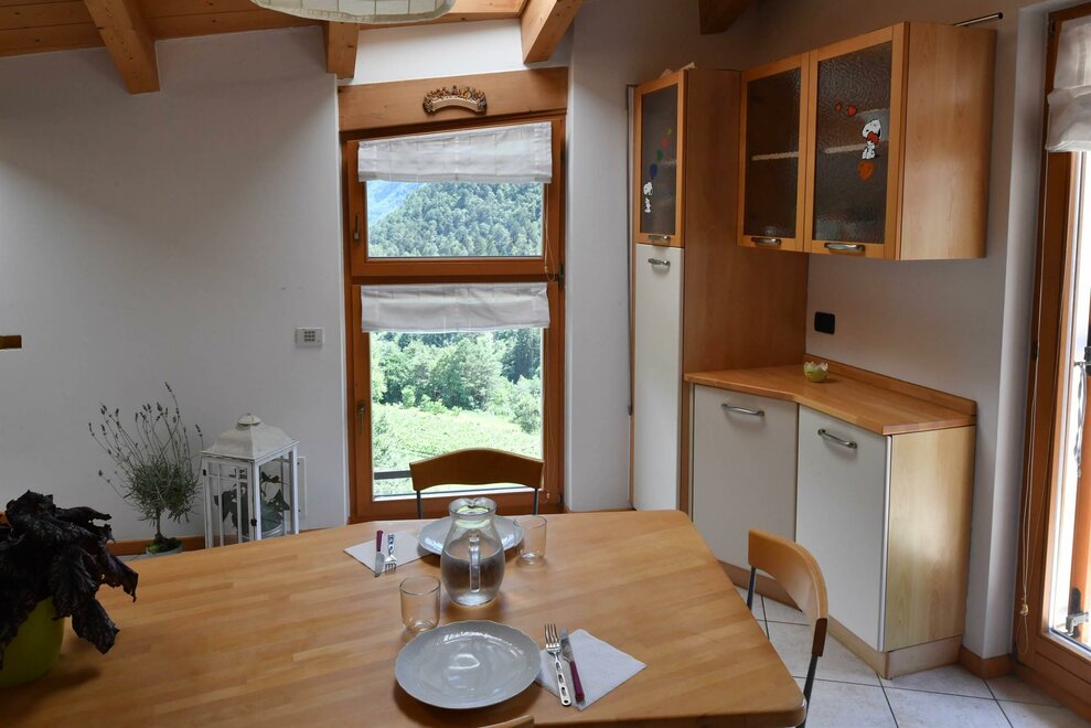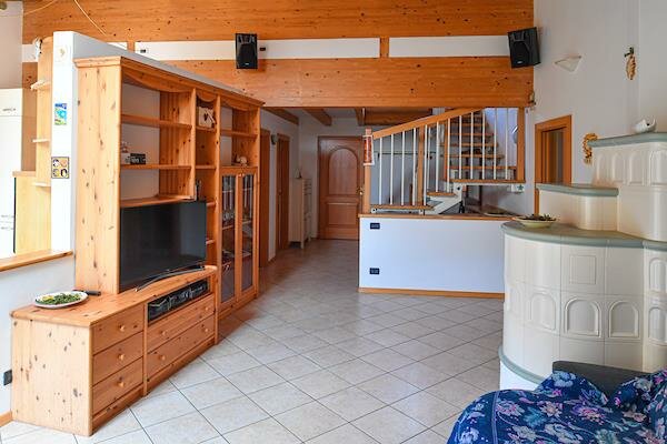 Obývací pokoj a kuchyně s balkonem jsou na dominantní pozici a nabízejí relaxační výhled na Valsuganu.