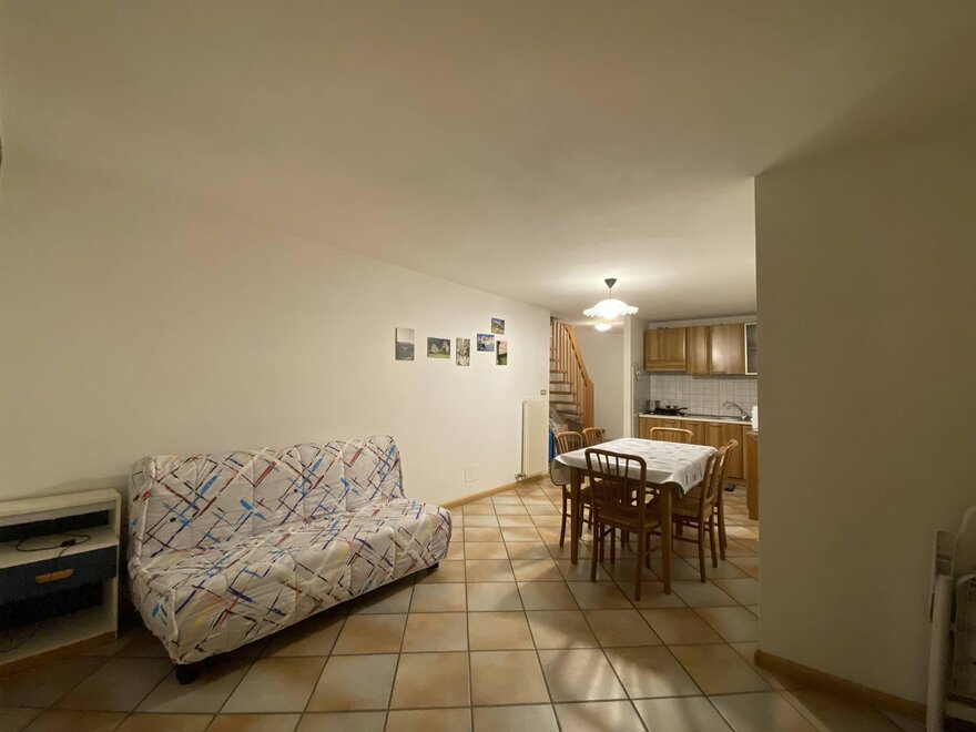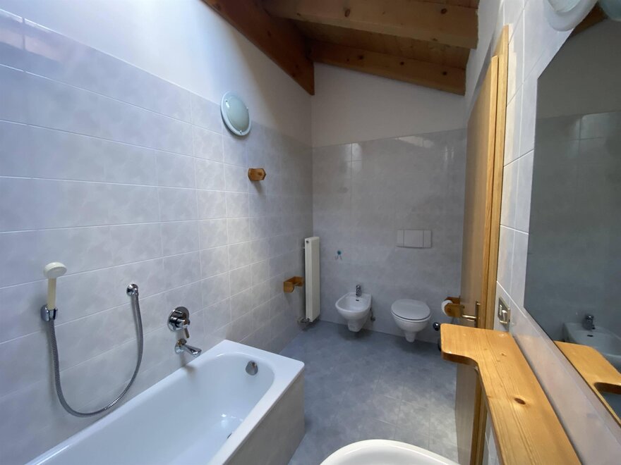 Byt o výměře přibližně 75 m². ve 2 patrech, slunný a panoramatický s výhledem na údolí a horský řetěz Lagorai.