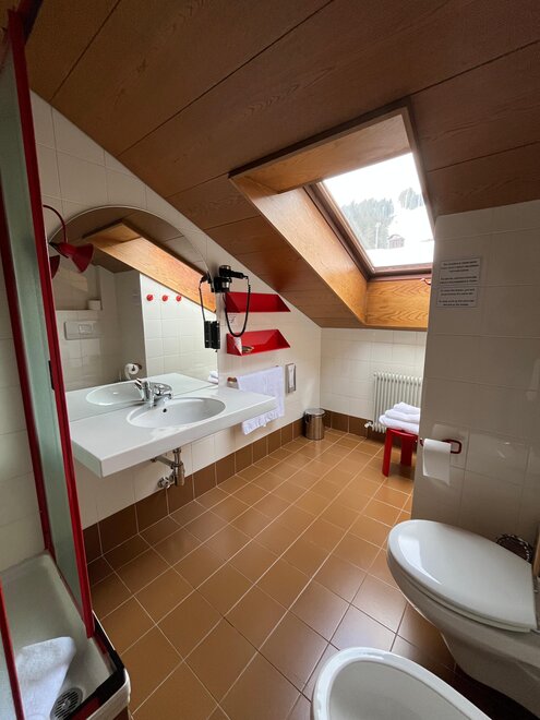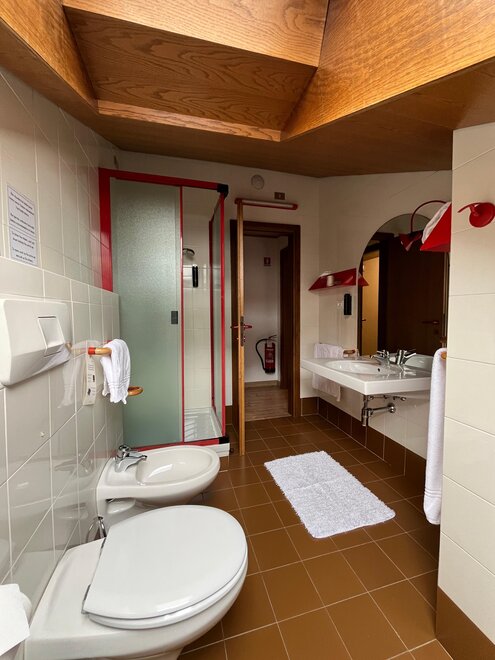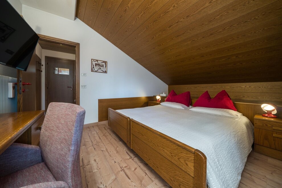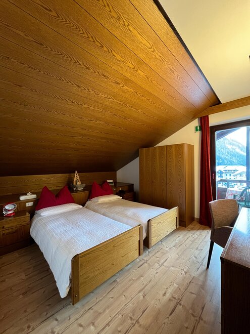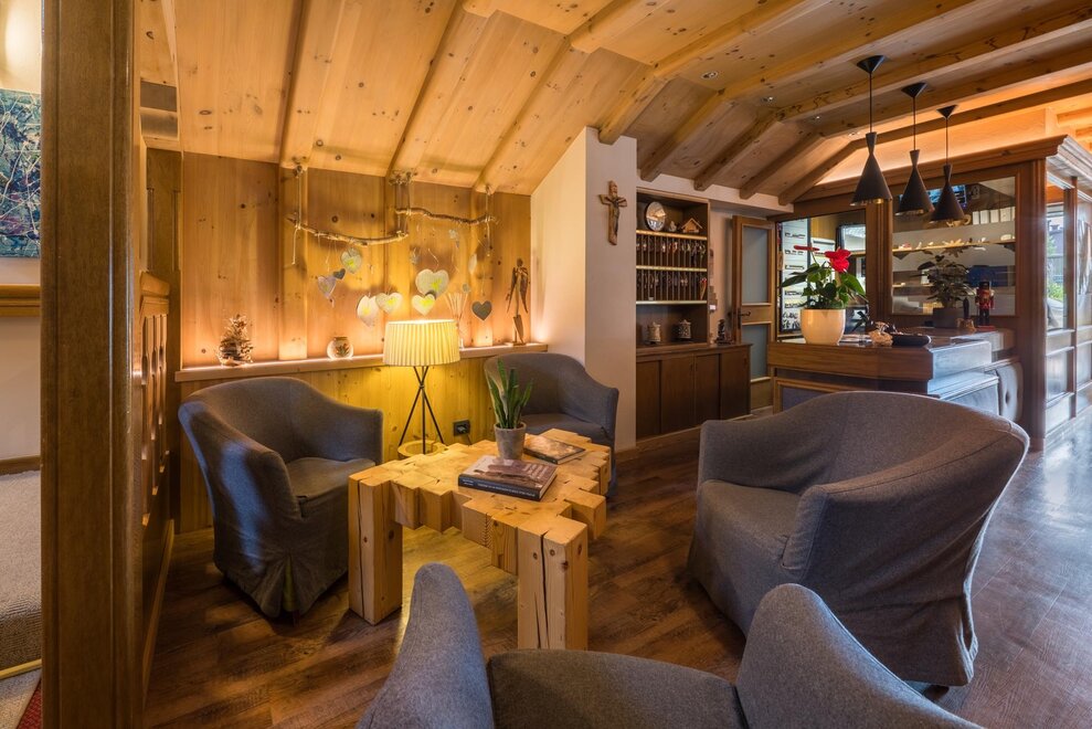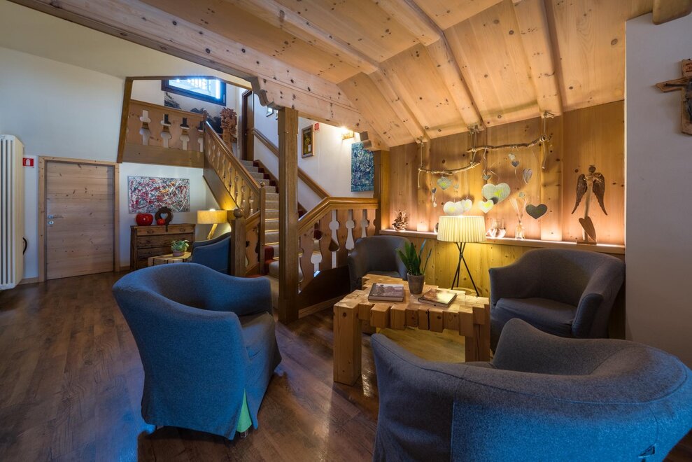 Budova, typicky horská, teplá, pohodlná a rodinná, má moderní pokoje, všechny se soc. zařízením, koupelnou a sprchou, telefonem, vnitřním barem, jídelnou, výtahem a krytým parkovištěm.