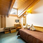 Double room without balcony located on the top floor, attic with skylight windows. Full range of facilities with shower, hairdryer. Equipped with a desk, telephone, Flat-screen TV, safe. Separate beds available on request. The images are not binding, but only indicative of the type.