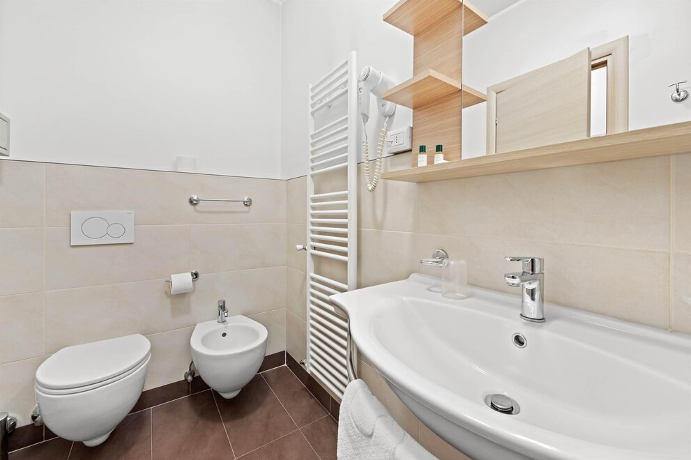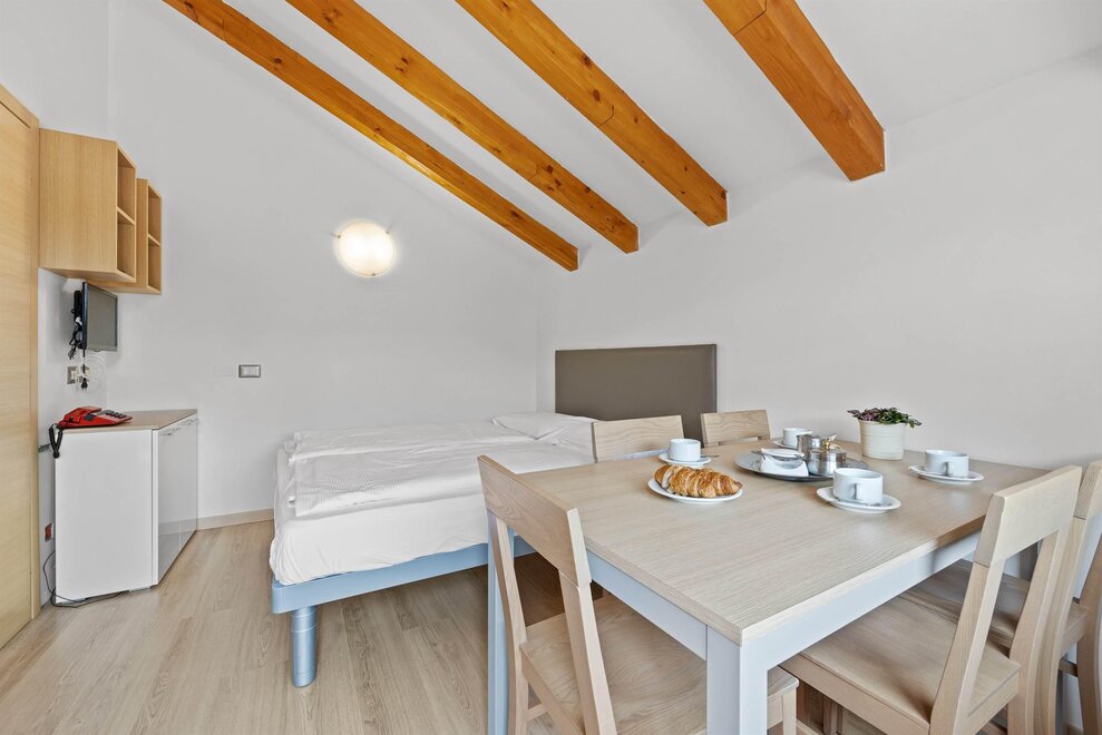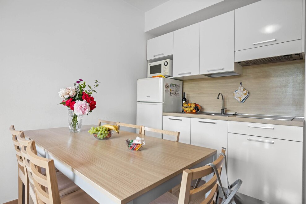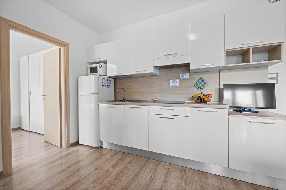 The price of the offer includes bed linen and towels, final cleaning, consumption, wi-fi connection and access to all common services. The apartments have blankets and pillows, telephone, TV, hairdryer, microwave, furnished and equipped kitchen, kitchen cleaning kit, toiletries, safe. For a fee: hire of bathrobes, stroller, hiking stroller and baby carrier backpack, coin-operated laundry and ironing room and garage (10.00 euros per day). The supplement for animals is € 10.00 per day.