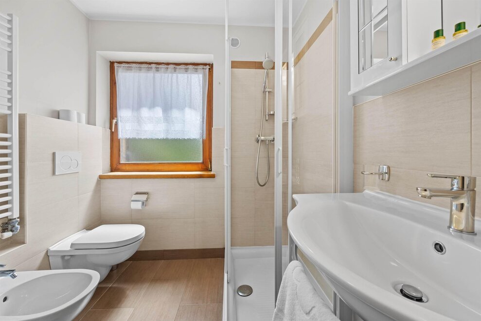 počet koupelen: 1, sprcha, WC, bidet, tekoucí studená/teplá voda