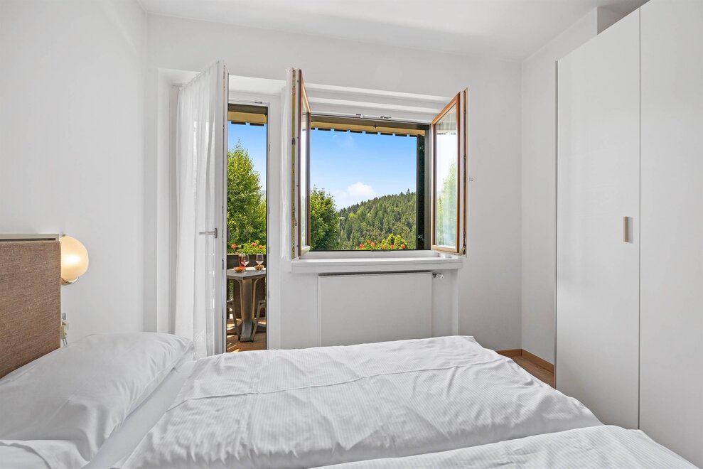 Tyto apartmán je kompletně zrekonstruovaný a je takto uspořádán: obývací a jídelní prostor s manželskou postelí, kuchyňský kout, ložnice s manželskou postelí a jednou jednolůžkovou postelí, koupelna se sprchou a balkon s výhledem do údolí. Všechny apartmány jsou vybaveny LCD TV, telefonem, trezorem, dobře vybavenou kuchyní s lednicí, nádobím, talíři a sklenicemi, mikrovlnnou troubou, kávovarem, příslušenstvím na úklid kuchyně (čisticí prostředek, houbička a utěrka), koupelnou se sprchou, bidetem, toaletou a fénem. Dále jsou poskytovány deky, polštáře a ložní prádlo a osušky s týdenní výměnou.
