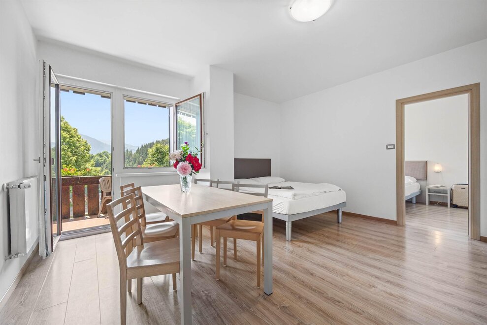 Residence Lagorai has been completely renovated, both the apartments and the services! It is located at an altitude of 1000m, 500m from the center of Tesero and a couple of kilometers from the main cross-country and downhill slopes (free ski bus stop at 150m). It is located in a quiet and panoramic area on the edge of the village and has a barbecue area and children's playground.
