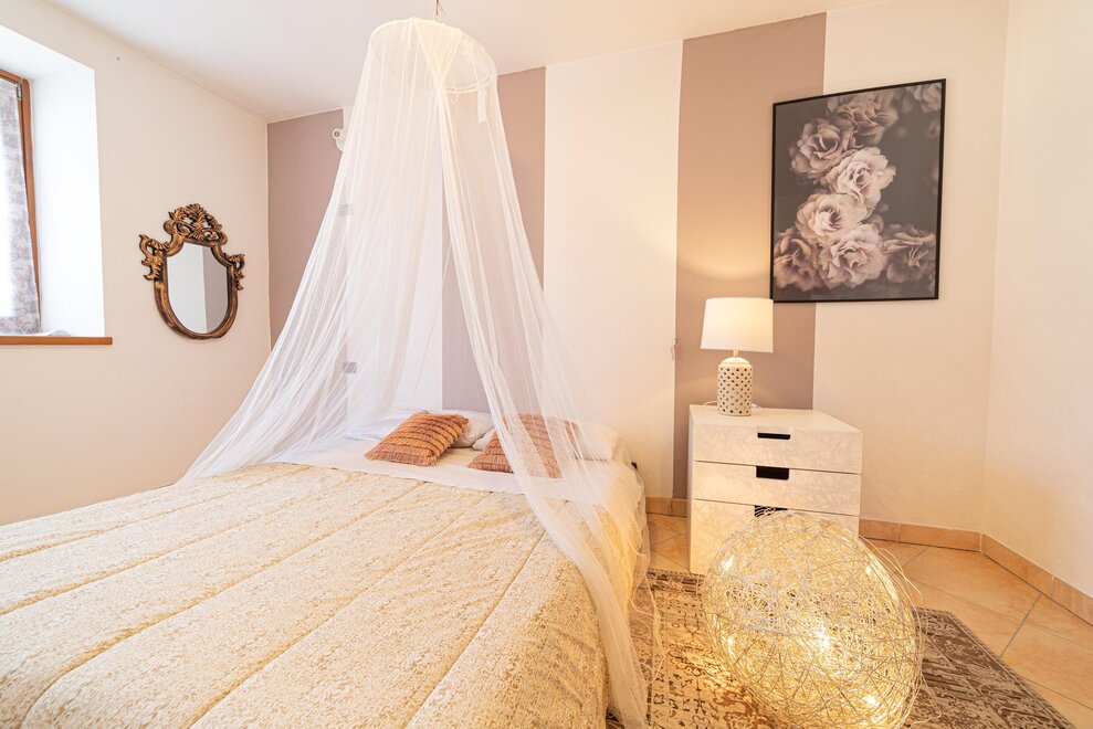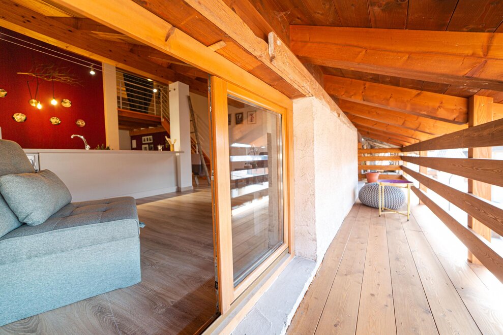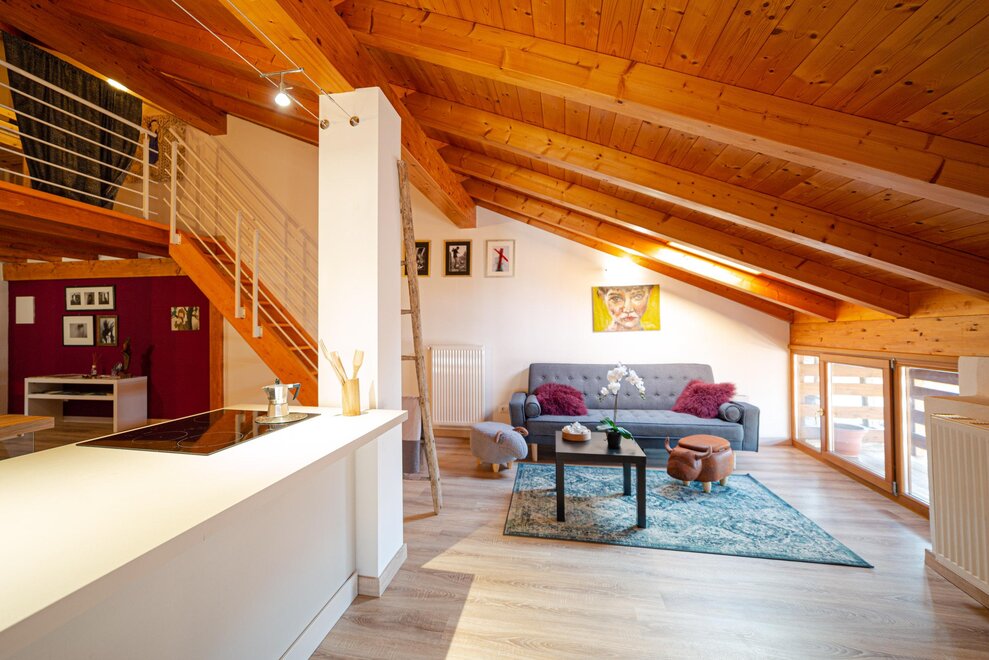 Apartmán se skládá z obývacího pokoje, dobře vybavené kuchyně, 3 ložnic (jedna s 2 samostatnými lůžky, 2 s manželskou postelí) a jednoho koupelny; jedna z ložnic se nachází na dřevěném galerii. Může thus ubytovat maximálně 6 až 7 osob. Je také k dispozici další lůžko, které lze umístit do obývacího pokoje pro dalšího hosta.