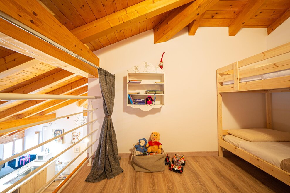 Jedna z ložnic byla speciálně navržena pro děti s nábytkem na míru a herním koutem.Vybavení pokojů
