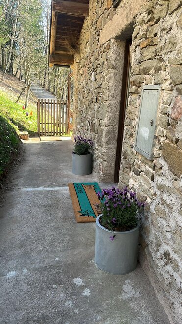 Chata o 60 m² na dvou patrech, moderně zrekonstruovaná se všemi komforty: plně vybavená kuchyň v otevřeném prostoru, obývací pokoj s rozkládací pohovkou, koupelna, ložnice s manželskou postelí a další rozkládací pohovka; venkovní prostor vybavený a obyvatelný s dřevěným grilem, krytým stolem a kamenným dřezem.