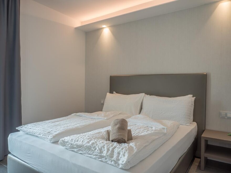 Moderní podkrovní apartmán s vysokými stropy o rozloze 50 m² se nachází v nejvyšším patře našeho rezidence. Skvělé pro ty, kdo milují naprostý klid a chtějí si užít panoráma z prostorných balkonů. Vybaven všemi komforty je ideální pro 2 max 4 osoby.