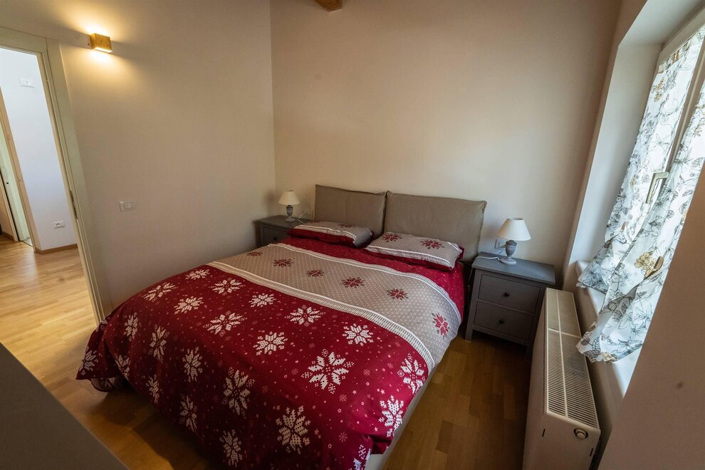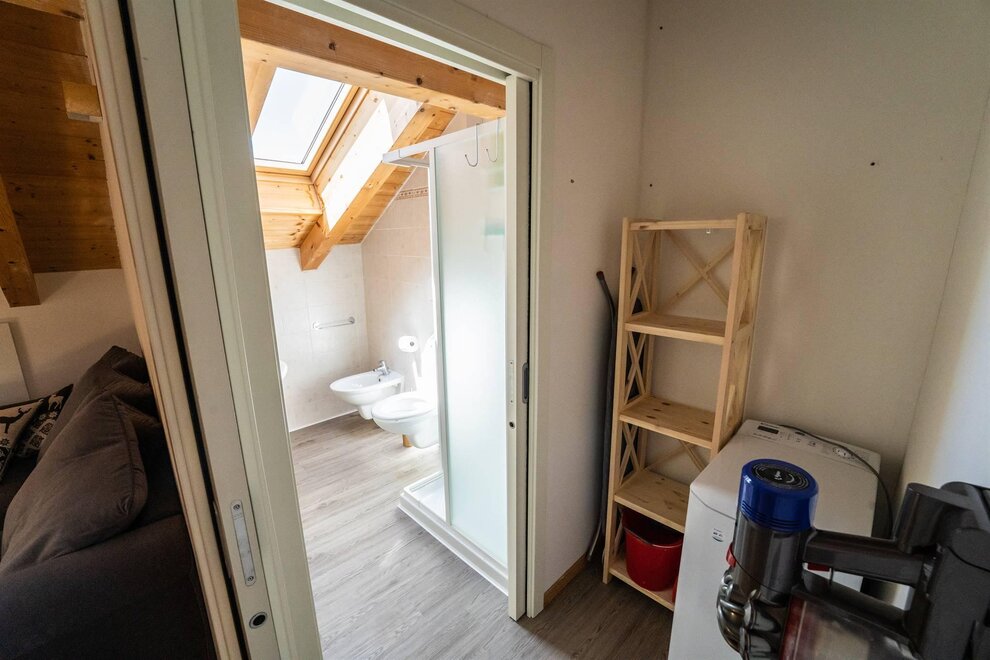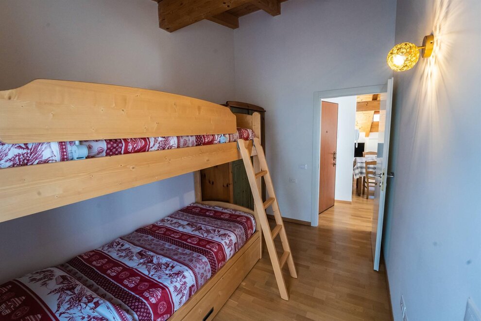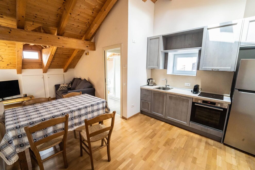 Podkrovní byt v Folgarii o rozloze přibližně 70 m² ve 3. patře klidného domu v centru náměstí města. Plně vybavená kuchyň s vařiči, troubou, myčkou a lednicí, dvě ložnice, jedna manželská a jedna s patrovou postelí. Balkon. Koupelna se střešním oknem, sprchou, pračkou a fénem. Na požádání ložní prádlo.