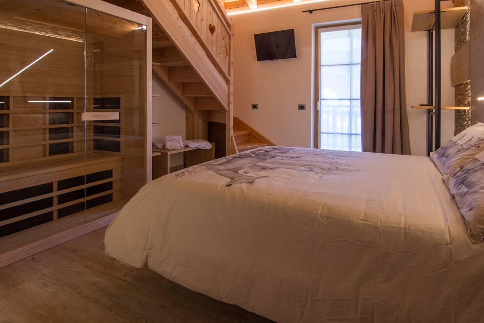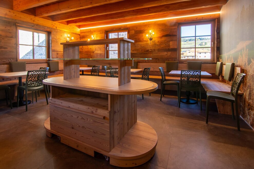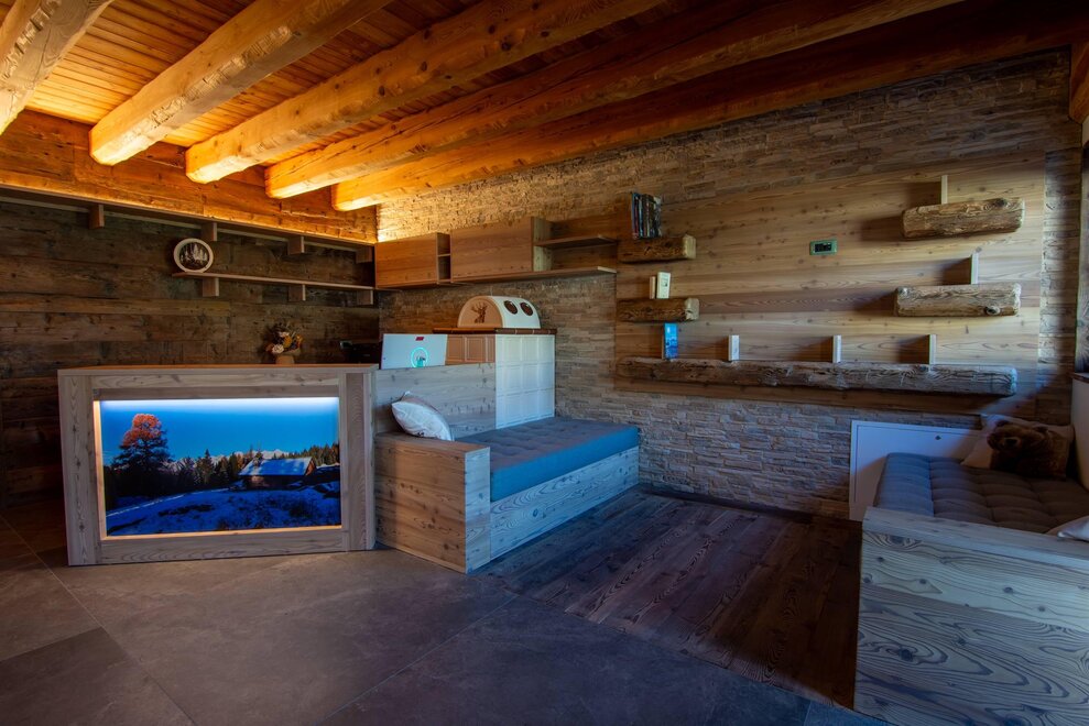 Objekt, který je celý ze dřeva, se dokonale zapojuje do horské krajiny.
