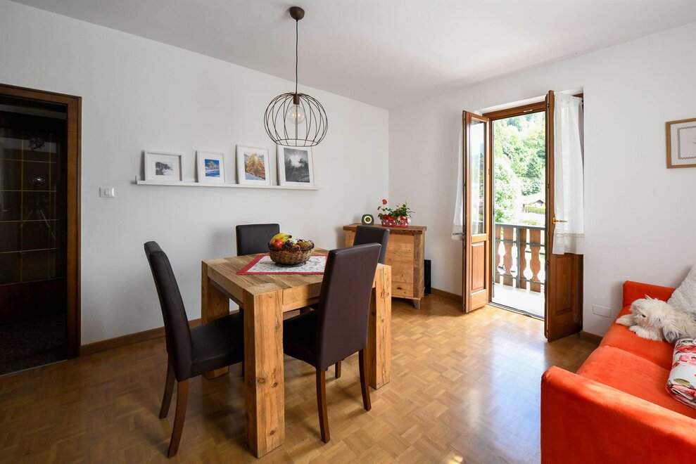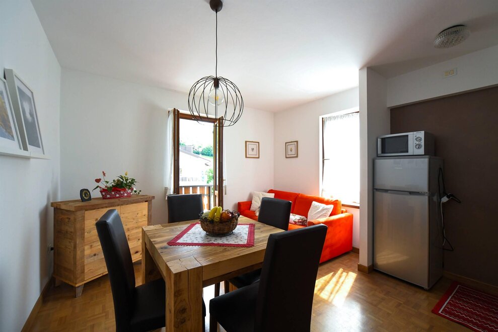 Nachází se v Tonadicu (5 minut chůze od historického centra Fiera di Primiero a 14 km od S. Martino di Castrozza) 150 metrů od supermarketu, novinového stánku, banky, autobusové zastávky a zastávky bezplatného skibusu přímo před domem. V blízkosti jsou pohodlné pěší vycházky, blízkost dětského hřiště, snadný přístup na cyklostezku, výchozí bod pro zajímavé cyklistické výlety v okolních lesích a po dolomitských průsmycích. Pro milovníky přírody a výletů možnost návštěvy blízkých přírodních parků: Paneveggio-Pale di S. Martino a Park dolomitů Bellunesi. Apartmán s výhledem na Dolomity sestává z pokoje s manželskou postelí, rozkládací pohovkou v obývacím pokoji, koupelnou se sprchou, kuchyní-obytným prostorem s plynem, trouba, lednice. Je vybaven společnými pračkami, TV a samozřejmě nádobím a přikrývkami. Disponuje samostatným topením a úložným prostorem na lyže a boty, krytou garáží, parkovacím místem. Ložní prádlo na vyžádání.